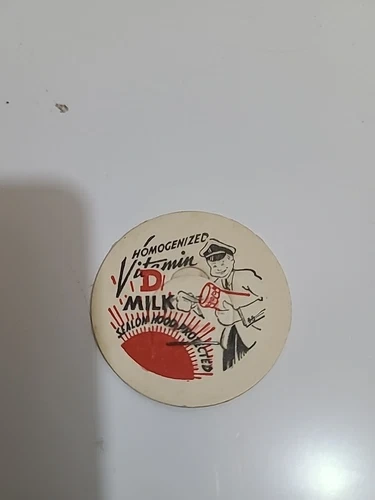 Ideal for enthusiasts of advertising memorabilia or those with a penchant for vintage food and beverage artifacts, this milk cap adds a touch of retro flair to any collection. Whether it's to complete a set or to start a new theme of dairy-related treasures, this piece is a delightful nod to the past.