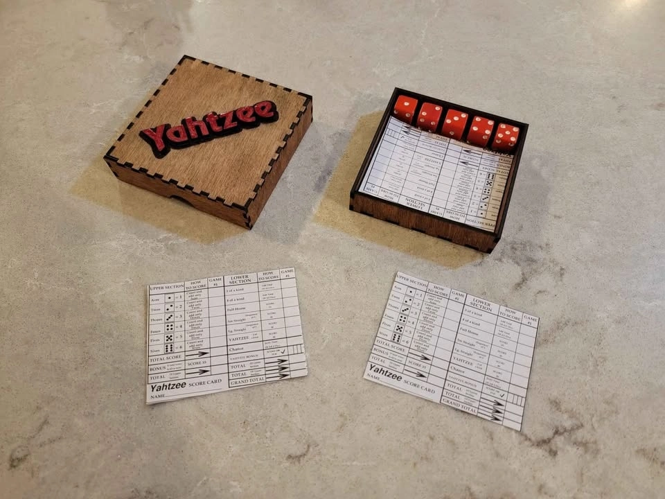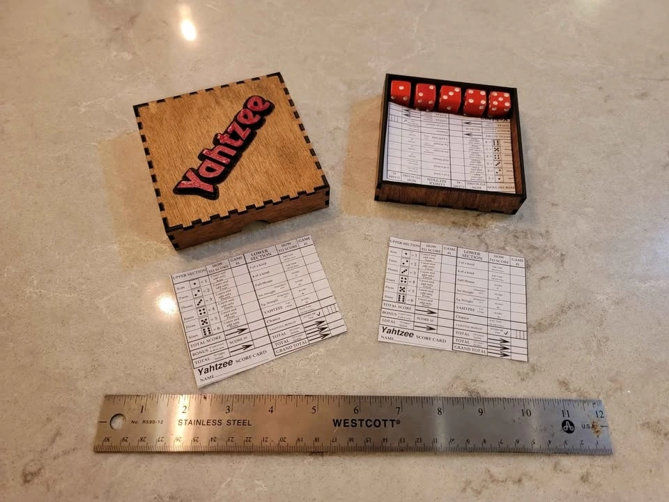 Travel Yahtzee Game with Fancy Wood Case (Laser Cut)