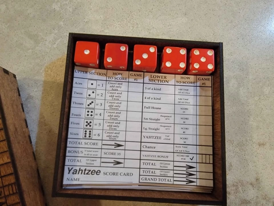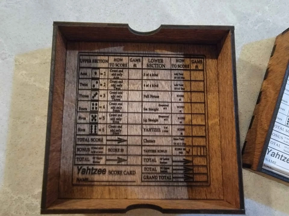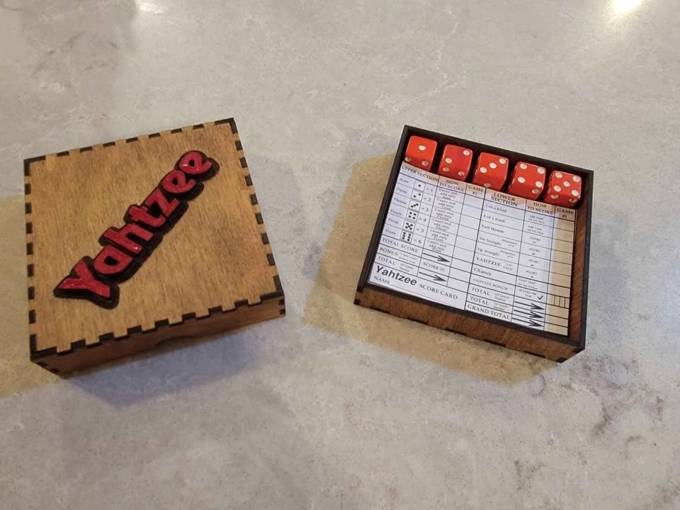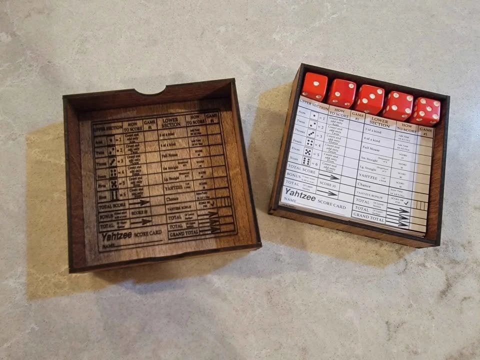 Travel Yahtzee Game with Fancy Wood Case (Laser Cut)