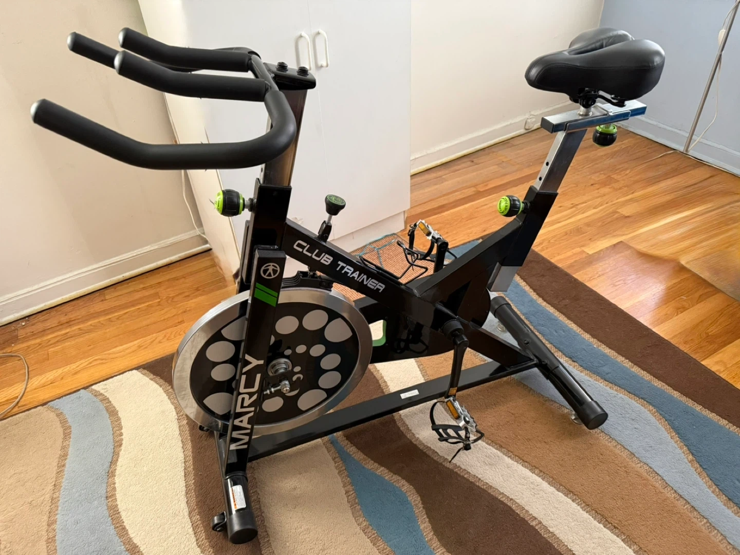 This Marcy Club Trainer spin bike is perfect for home workouts. It features adjustable resistance and upgraded pedals (which I added myself). The bike has a comfortable, adjustable seat and is very sturdy. Amazon is currently selling this same bike new for $439. I purchased this bike in late 2024 and have only used it a few times.