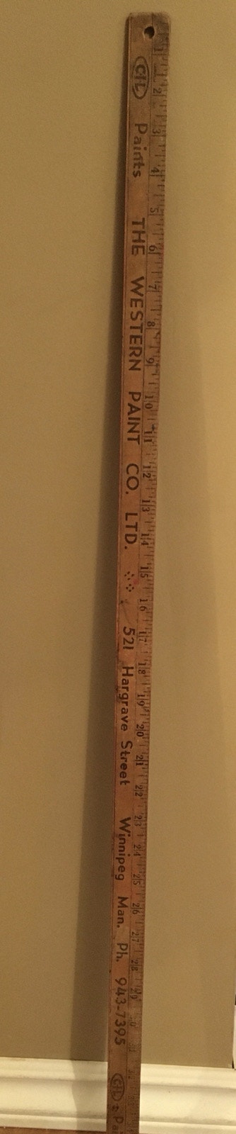 Check out this vintage Western Paint Co. Ltd. ruler, straight from Winnipeg! This nostalgic piece measures one yard and is a great collectible from the 521 Hargrave Street location. This item is in used condition, but has plenty of life left in it. Brand: Western Paint Co. Ltd. Length: 1 Yard Location: Winnipeg, Manitoba If the ad is up, the ruler is ready to measure up to its next adventure! Cash accepted.