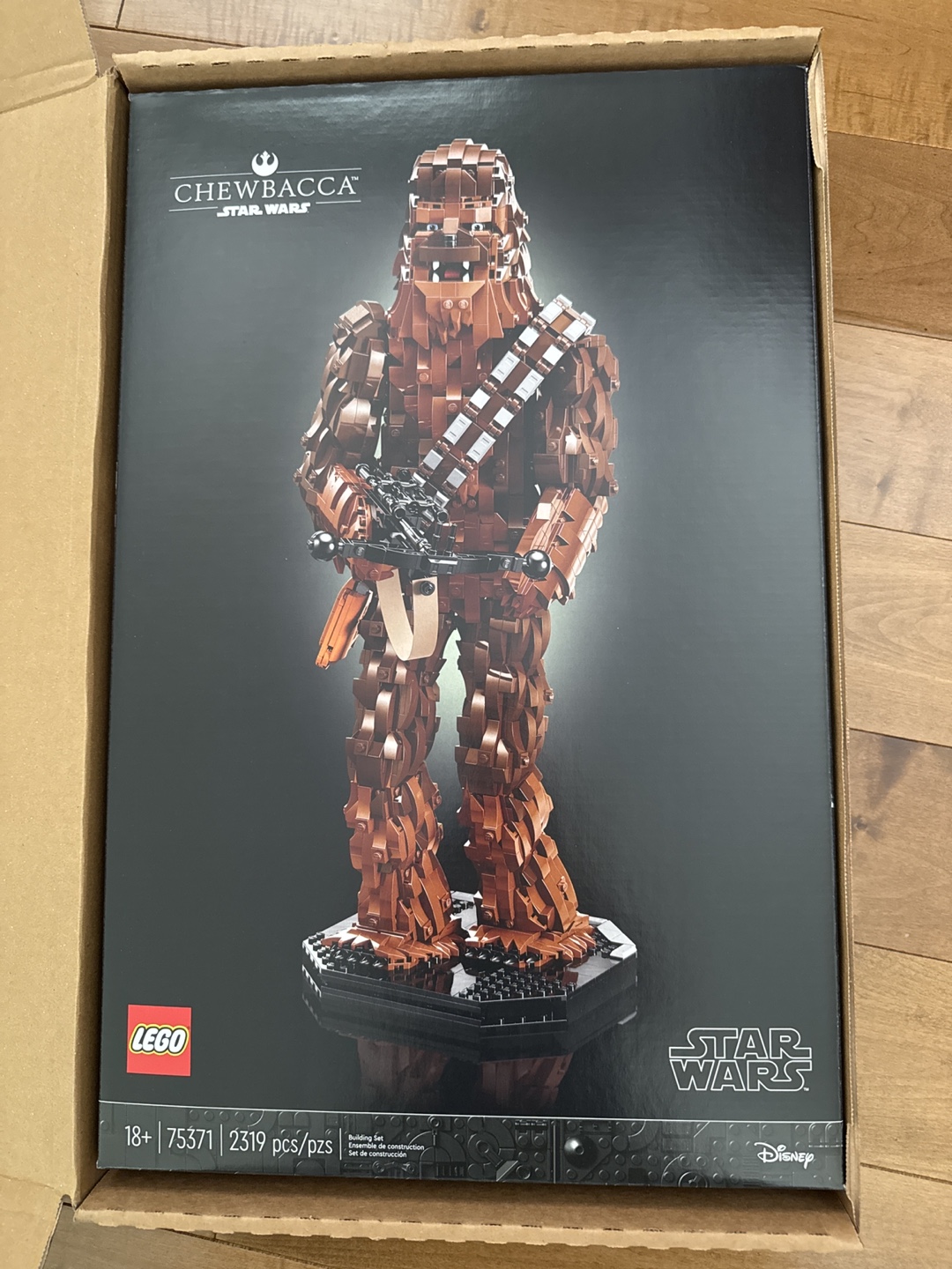 Selling a LEGO Star Wars Chewbacca building set (model 75371)! This set is for ages 18+ and includes 2319 pieces for a detailed and fun building experience. A great gift for any Star Wars or LEGO fan!