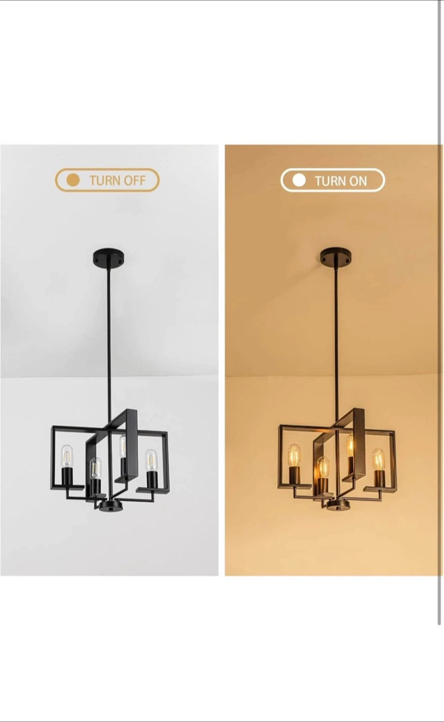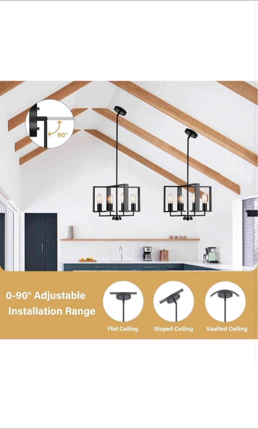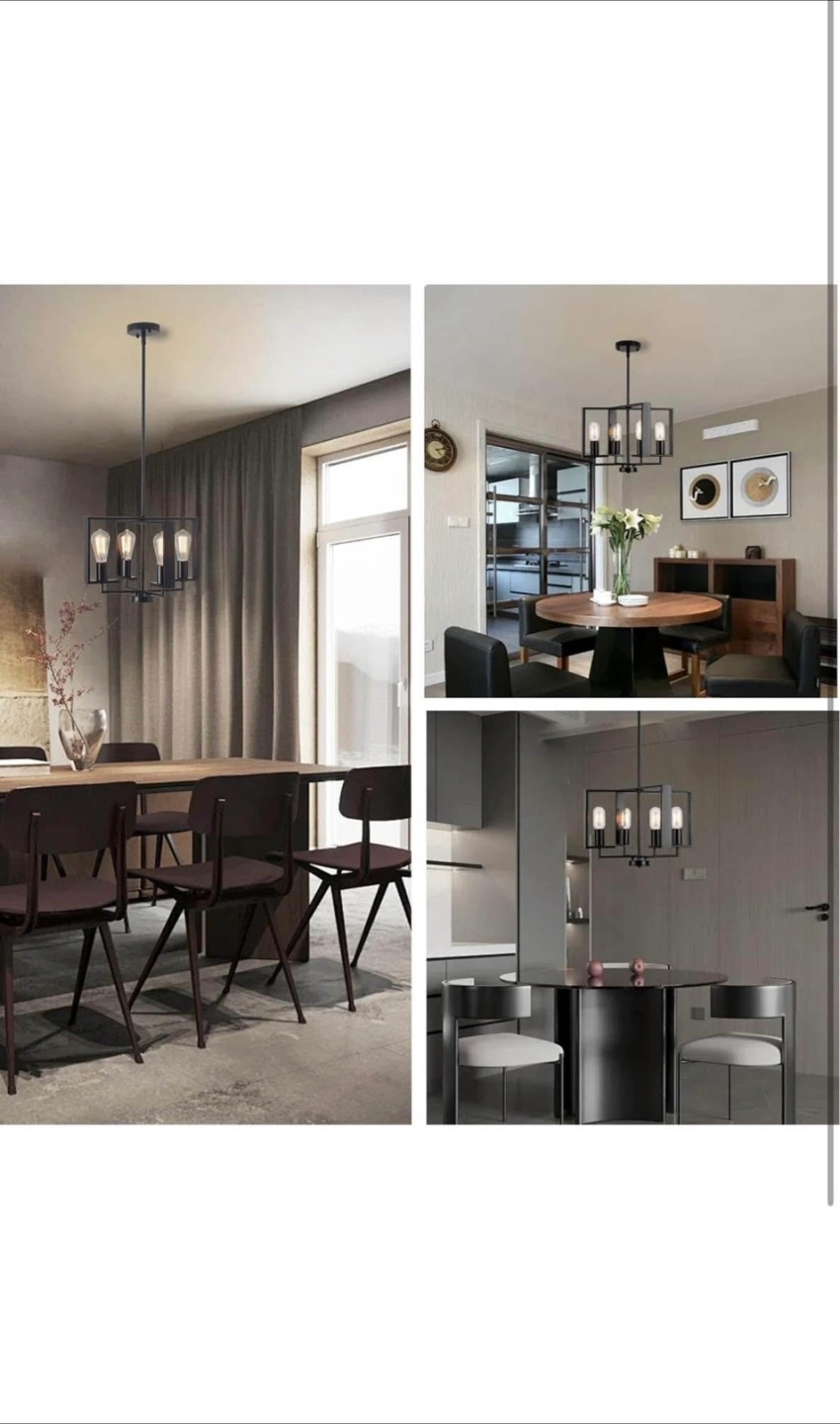 Rustic Farmhouse Chandelier: This 4-Light black chandelier features a geometric frame design and passed UL certification that safety and quality assurance. Dining room lighting fixtures adds a timeless touch of industrial elegance to your home decor.