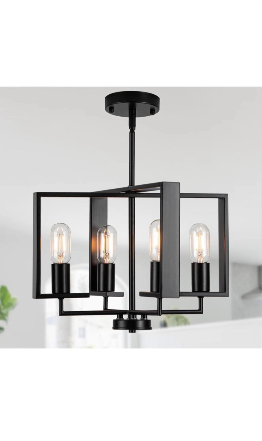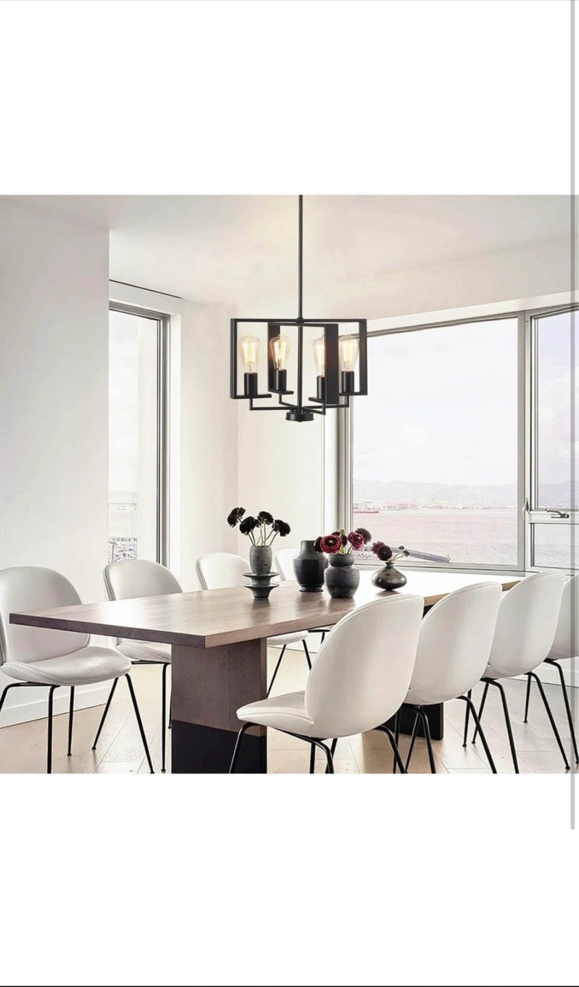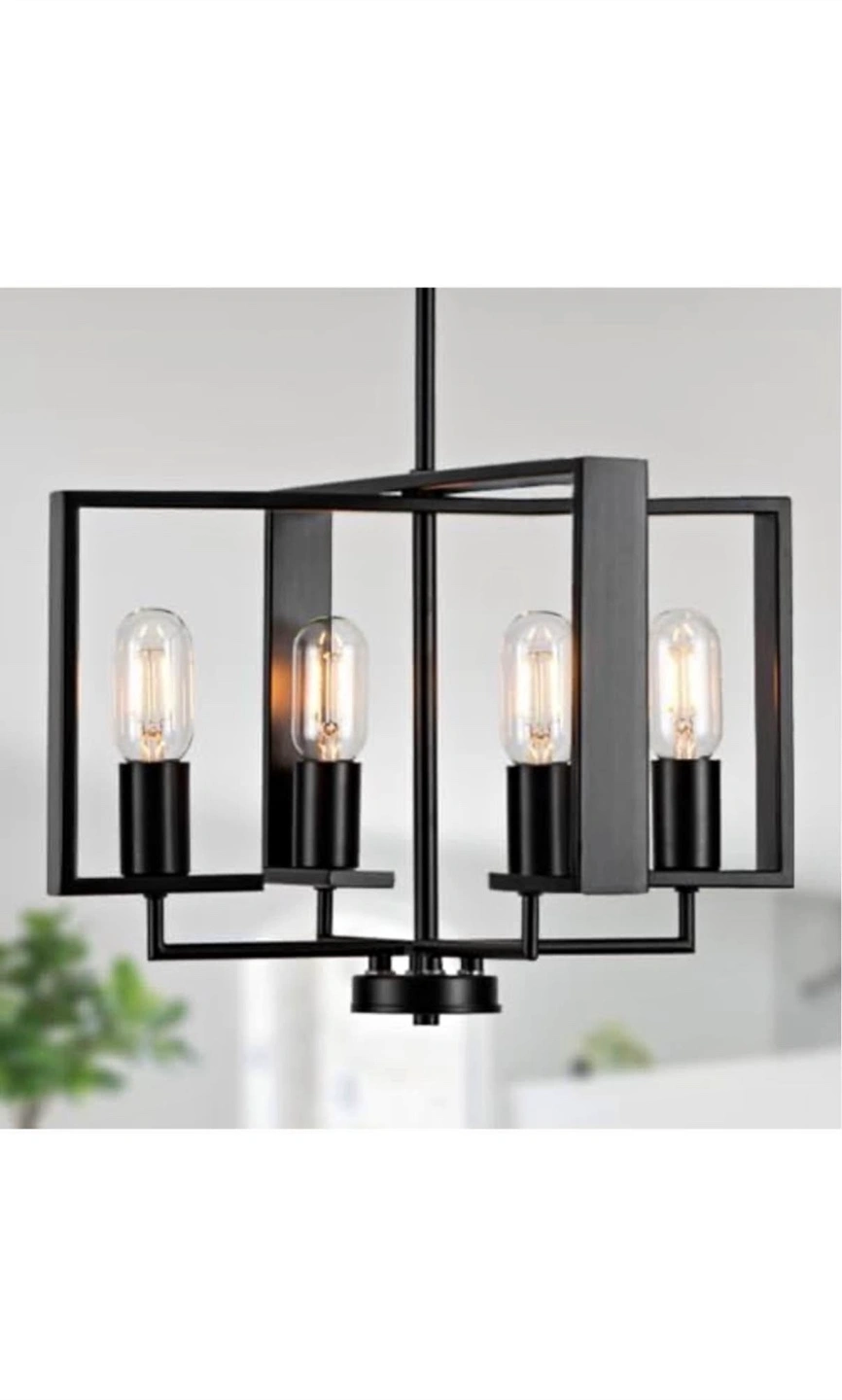 Rustic Farmhouse Chandelier: This 4-Light black chandelier features a geometric frame design and passed UL certification that safety and quality assurance. Dining room lighting fixtures adds a timeless touch of industrial elegance to your home decor.