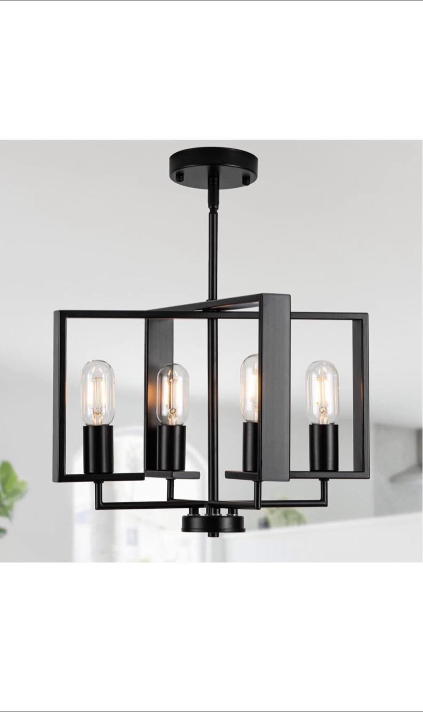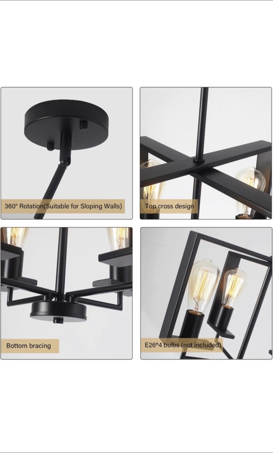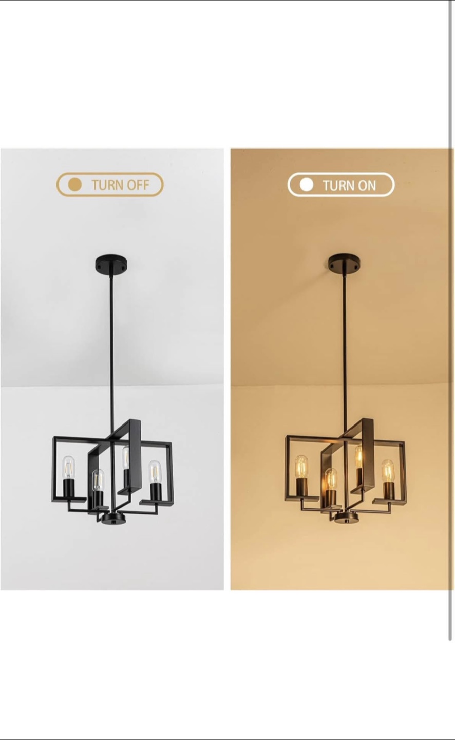 Rustic Farmhouse Chandelier: This 4-Light black chandelier features a geometric frame design and passed UL certification that safety and quality assurance. Dining room lighting fixtures adds a timeless touch of industrial elegance to your home decor.