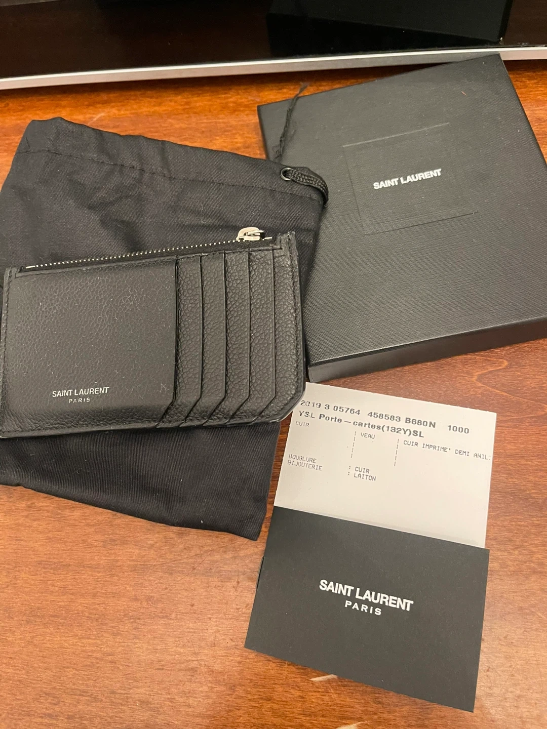 Selling a Saint Laurent card holder in black leather. It comes with its original box and dust bag. Perfect for keeping your cards organized in style!