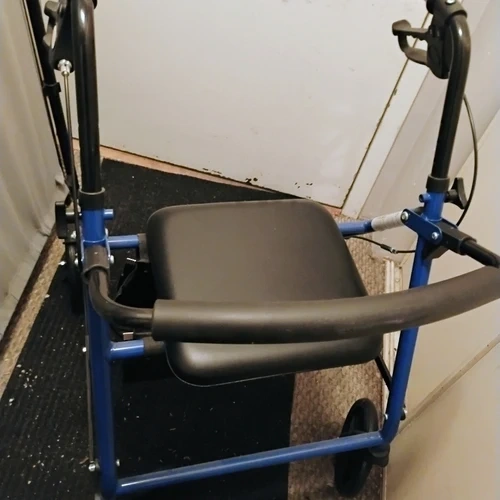 This is a walker from Living Basics. It features a seat and hand brakes for easy stopping. The frame is constructed from sturdy metal. It was only used for 6 months & is like new. Paid $120 brand new, but open to decent offers.