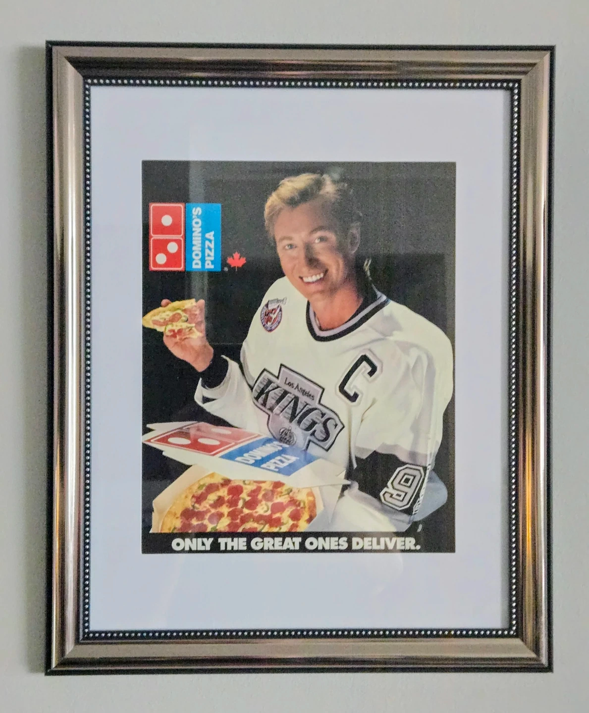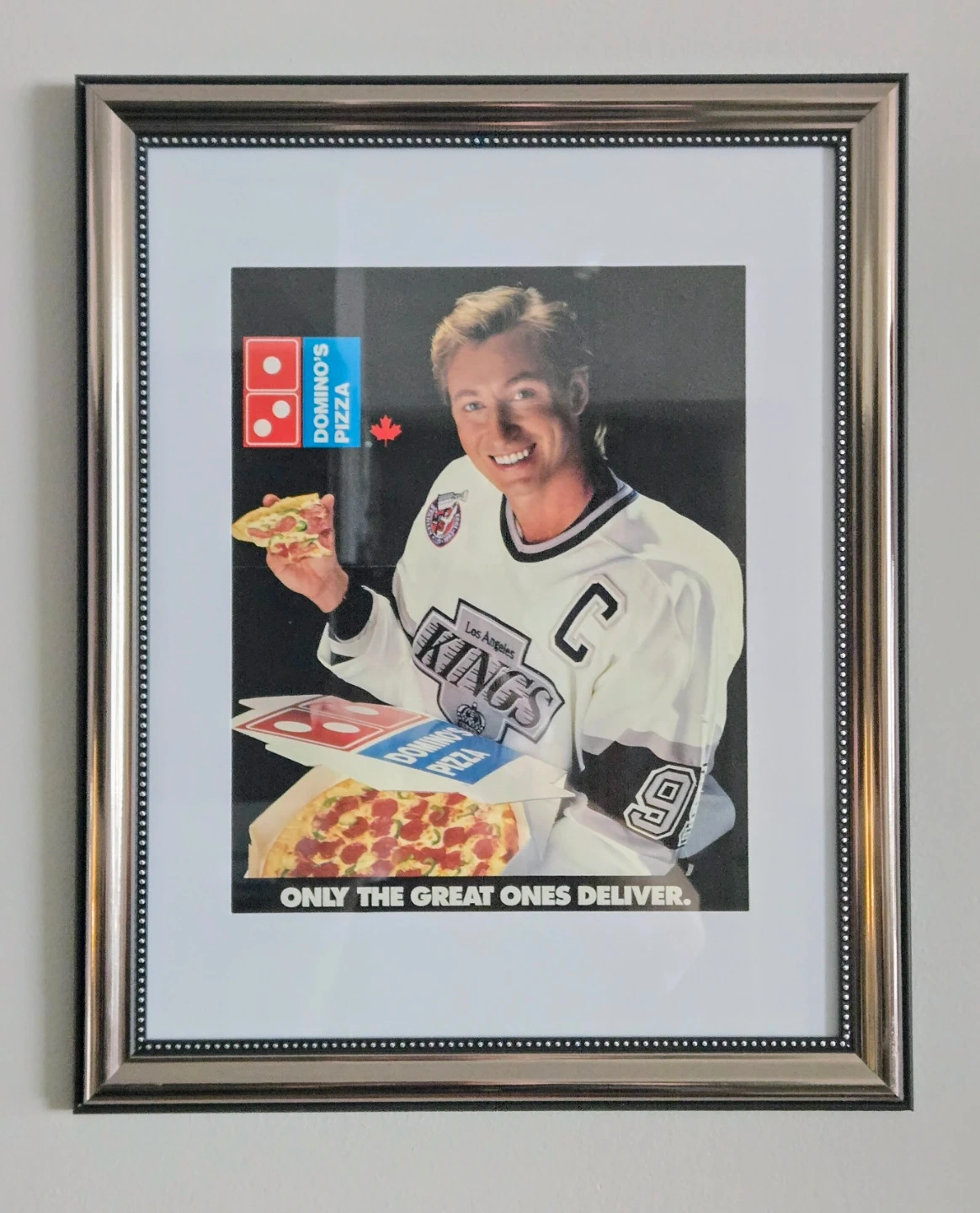 Vintage Framed 1994 Wayne Gretzky Domino's Pizza Ad.
