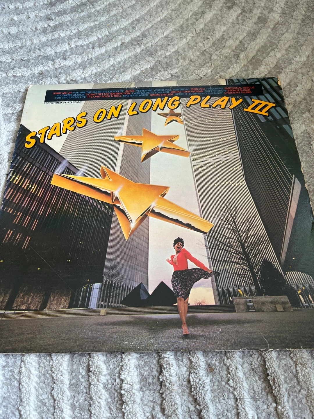 This is the Stars on Long Play III vinyl record. It's performed by Stars On and features a collection of popular songs. The vinyl comes as pictured.