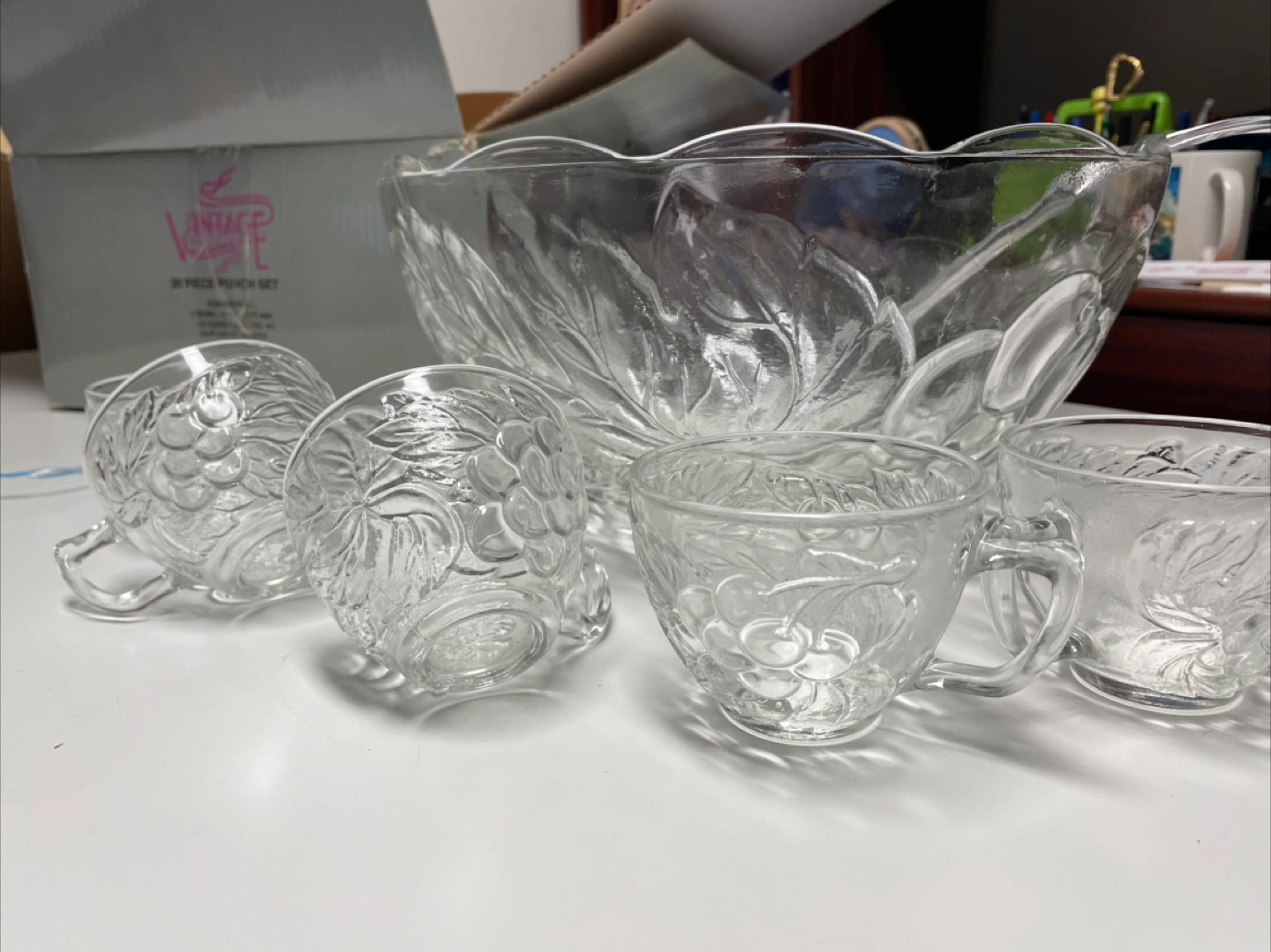 Selling a Vintage Collection 26 piece punch set! It comes with the punch bowl, cups, and ladle, all in excellent condition and ready for your next gathering. The set includes the original box. Cash, self pickup.