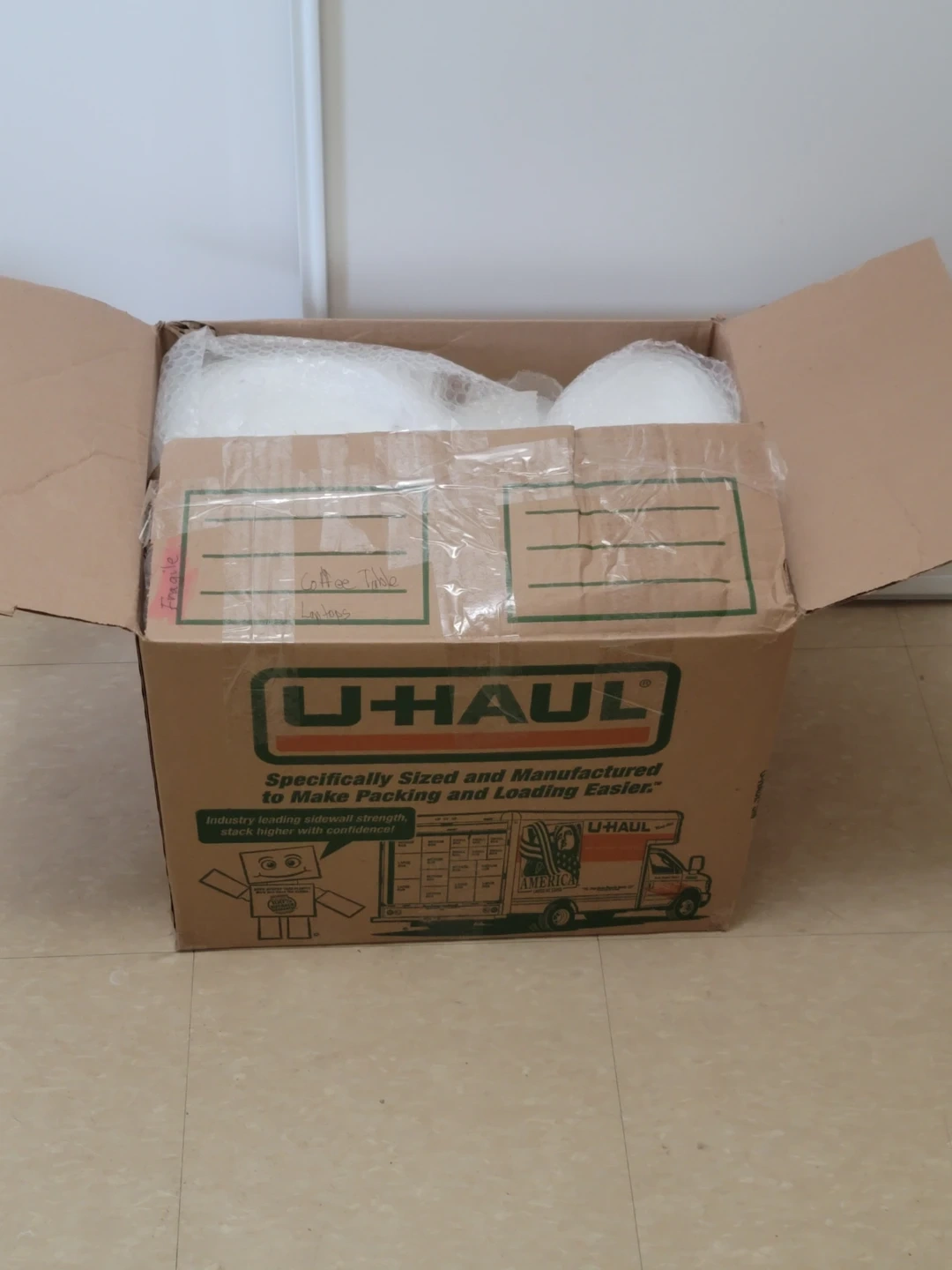 A collection of U-Haul moving boxes and larger thicker boxes, bubble wrap great for storage or packing up belongings. Also includes a stack of Walmart Delivery Pass paper bags. Ready for your next move or organizational project.