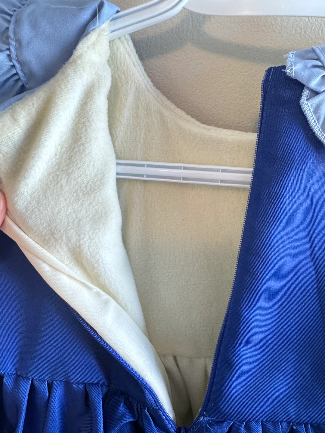 A cute blue dress featuring Judy Hopps from Zootopia. It has a Peter Pan collar, yellow bows, and a decorative black pocket , also fleece-lined. Dress it up for parties or playtime!