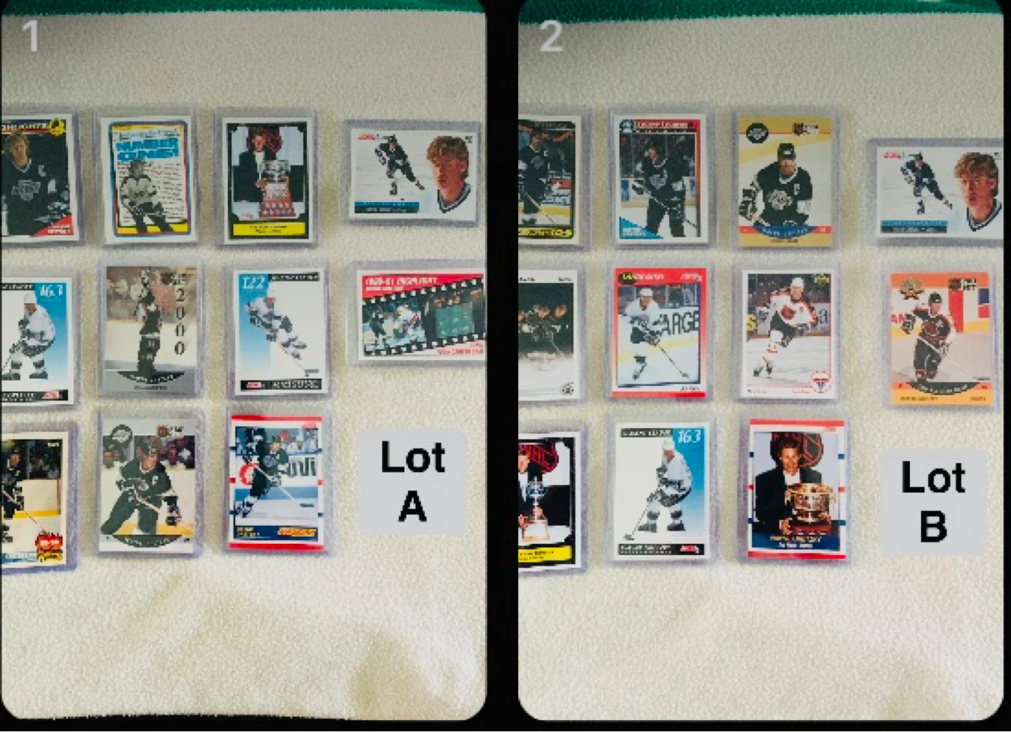 Pulled straight out of box in excellent near mint condition (zoom in on pictures). LOT of 11 Wayne Gretzky Trading Cards UNGRADED. Comes with double protective sleeves (soft sleeve inside a hard sleeve) There are no duplicate cards in a LOT. Each LOT is $25 CAD (FIRM). There are 2 lots available. TAKE AS IS (NO trade/exchange or selling separately). Smoke Free Home.