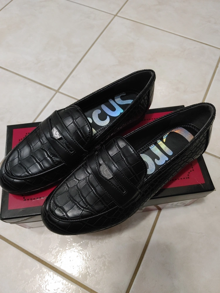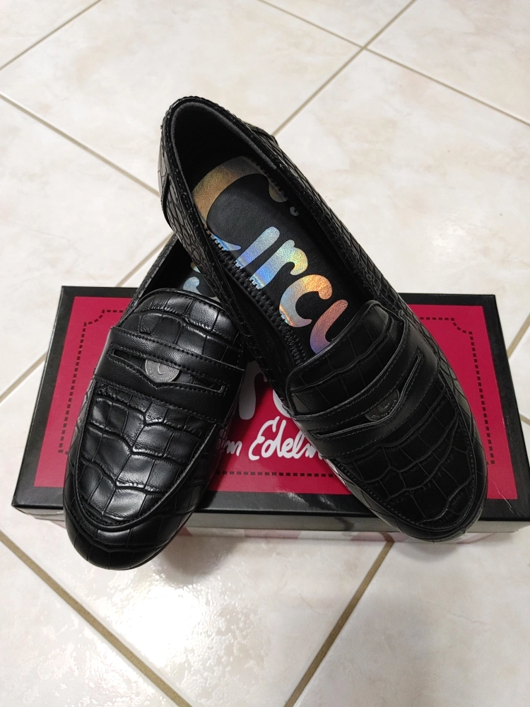 Black crocodile-embossed leather loafers by Circus by Sam Edelman. Size 6. Includes original box.