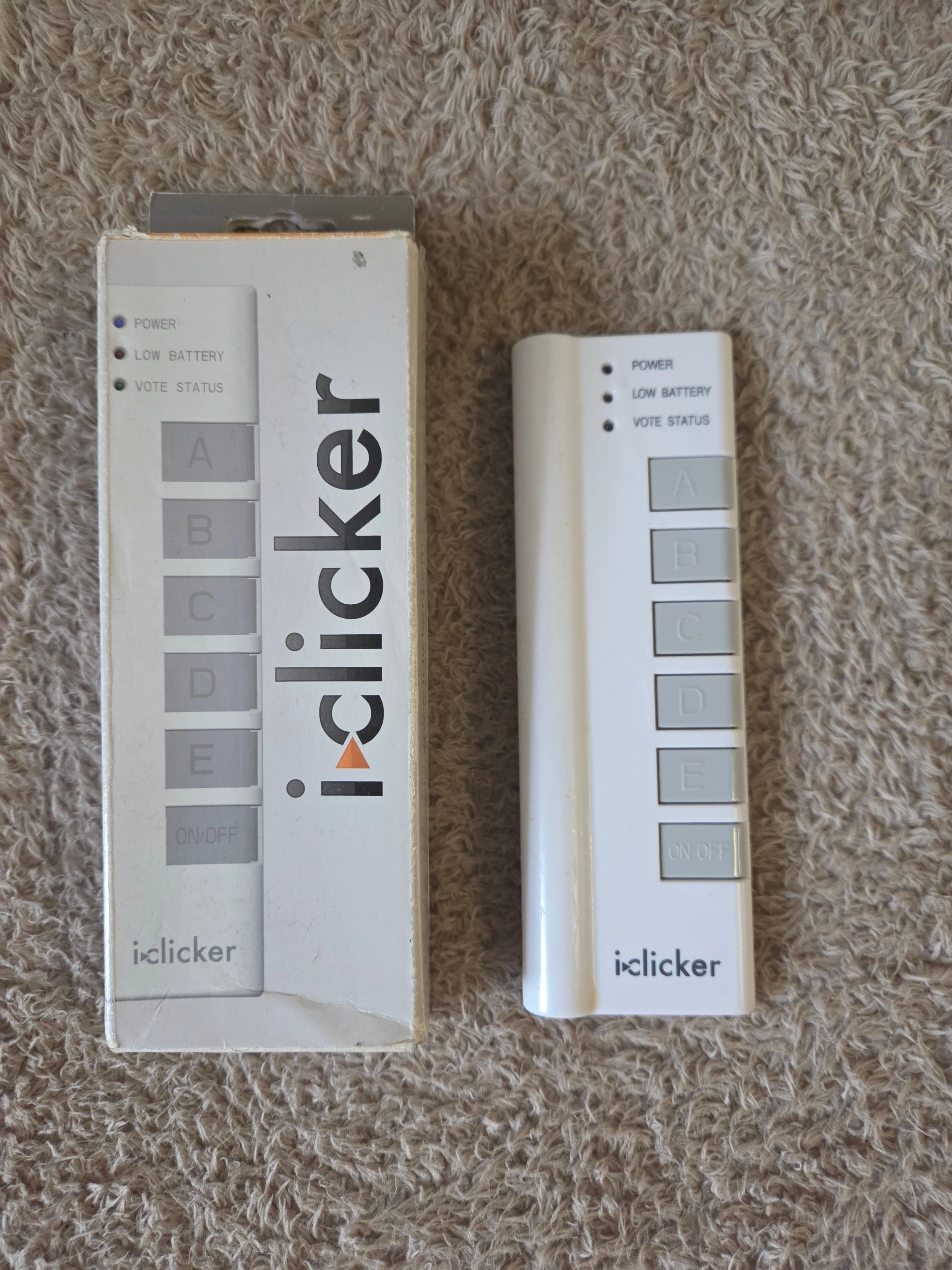 Selling an original iClicker student remote – the classic A–E model – AS IS. Untested. I have not turned it on or paired it with a base station. Priced accordingly.