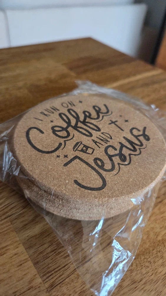 Brand new set of 6 Christian-themed cork coasters – perfect for your coffee table, home décor, or as a meaningful gift. Each coaster features a beautiful faith-inspired message.