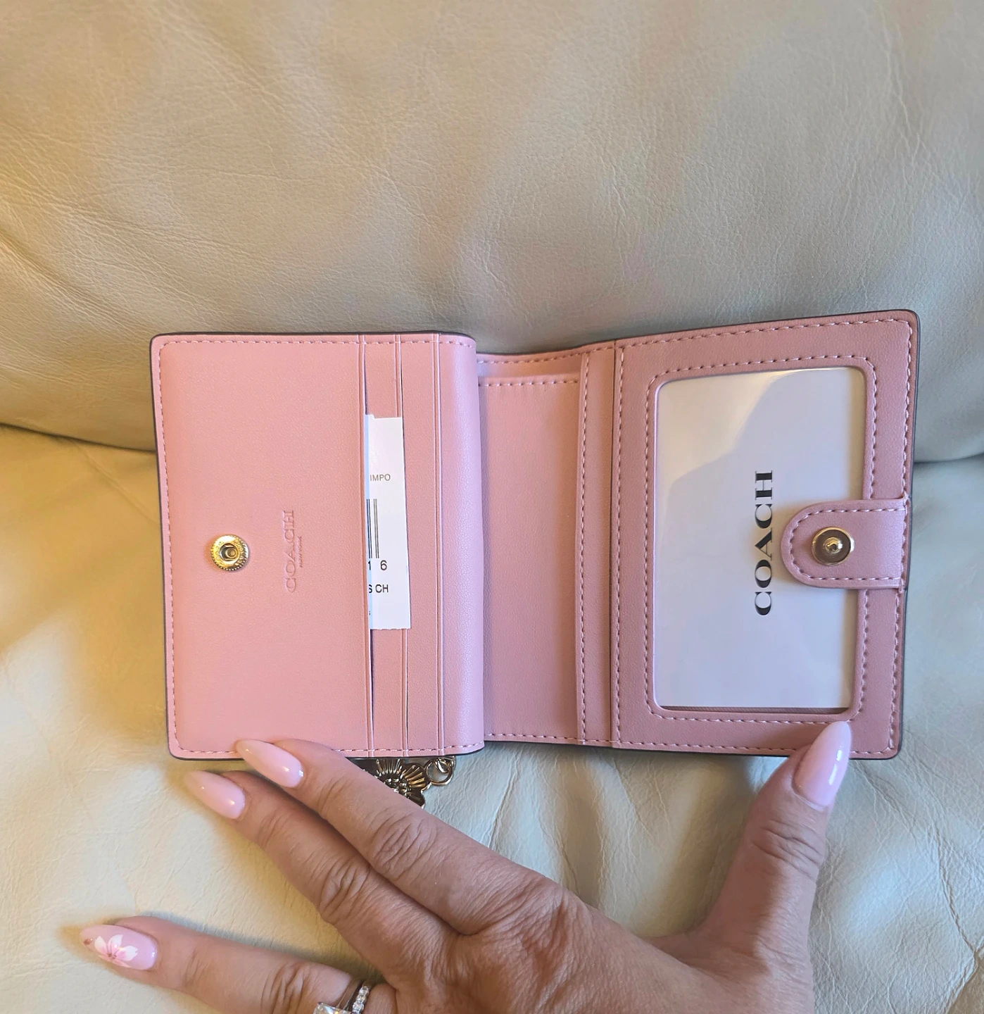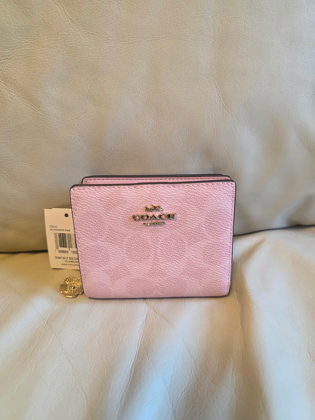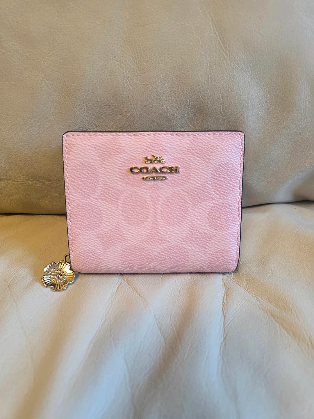 Coach Snap Wallet In Signature Canvas With Charm - Powder Pink