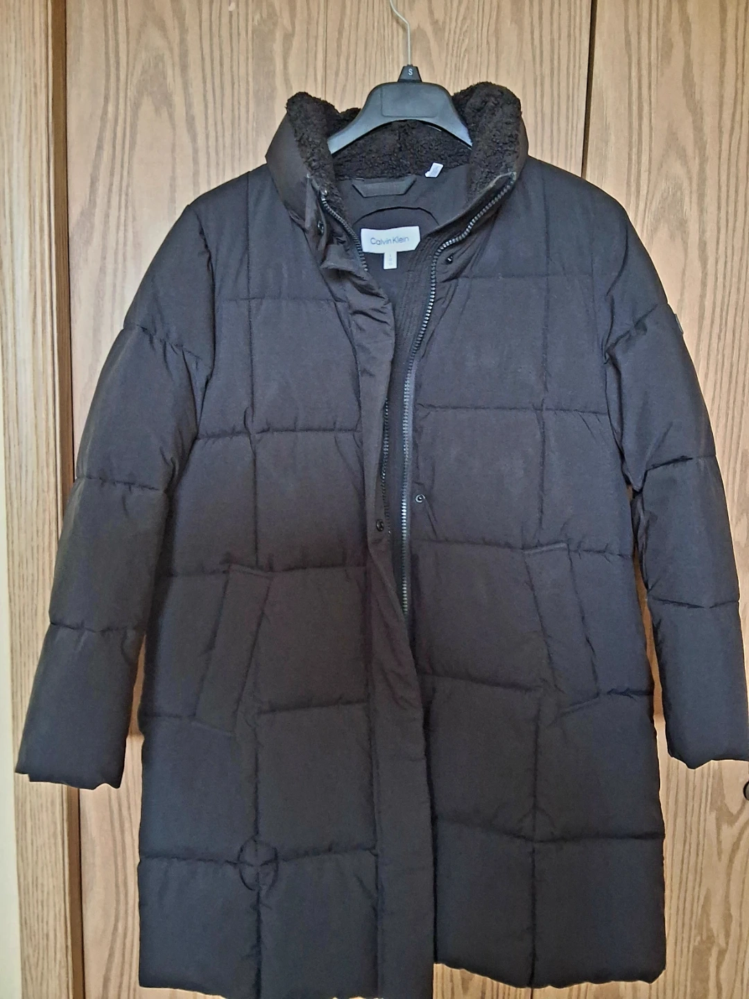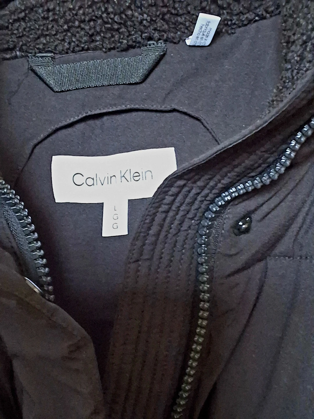 Cozy Calvin Klein women's puffer coat in black, perfect for chilly days! It's a size L. Great for staying warm and stylish. Used only once.