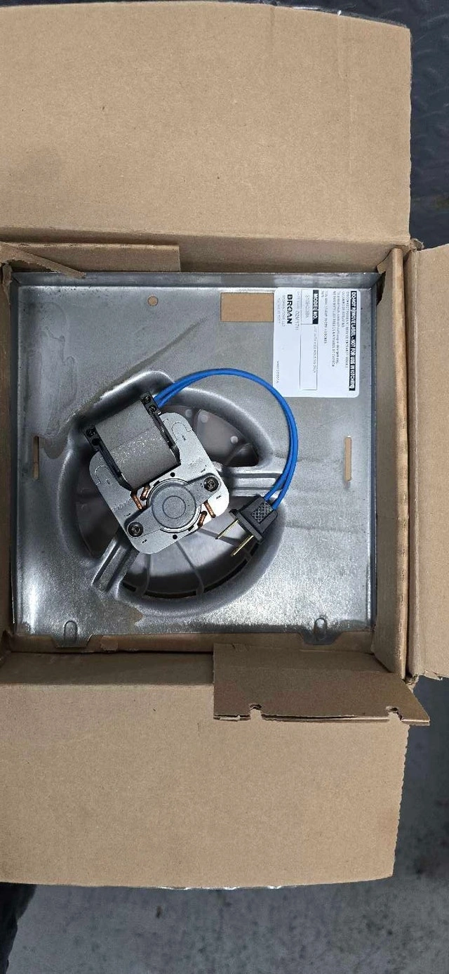 I am selling a brand-new Broan ventilation fan, model number S10546355BA. It has never been installed and is still in its original packaging. This fan ensures top quality and performance for your ventilation needs. Specifications: Model Number: S10546355BA. Date Code: 02M17H. If the ad is still up, the fan is available and ready to whisk away moisture and odours. Cash accepted.
