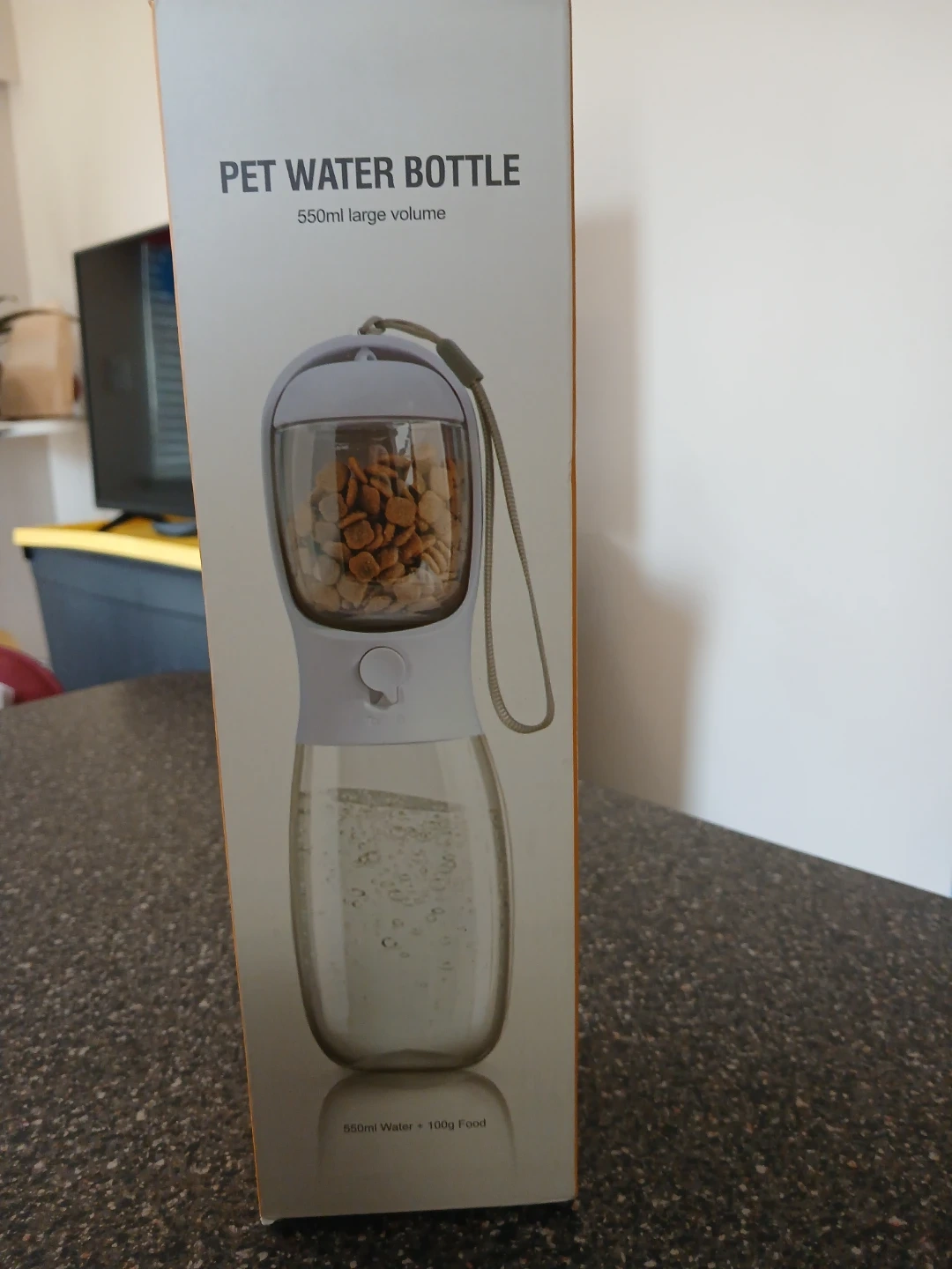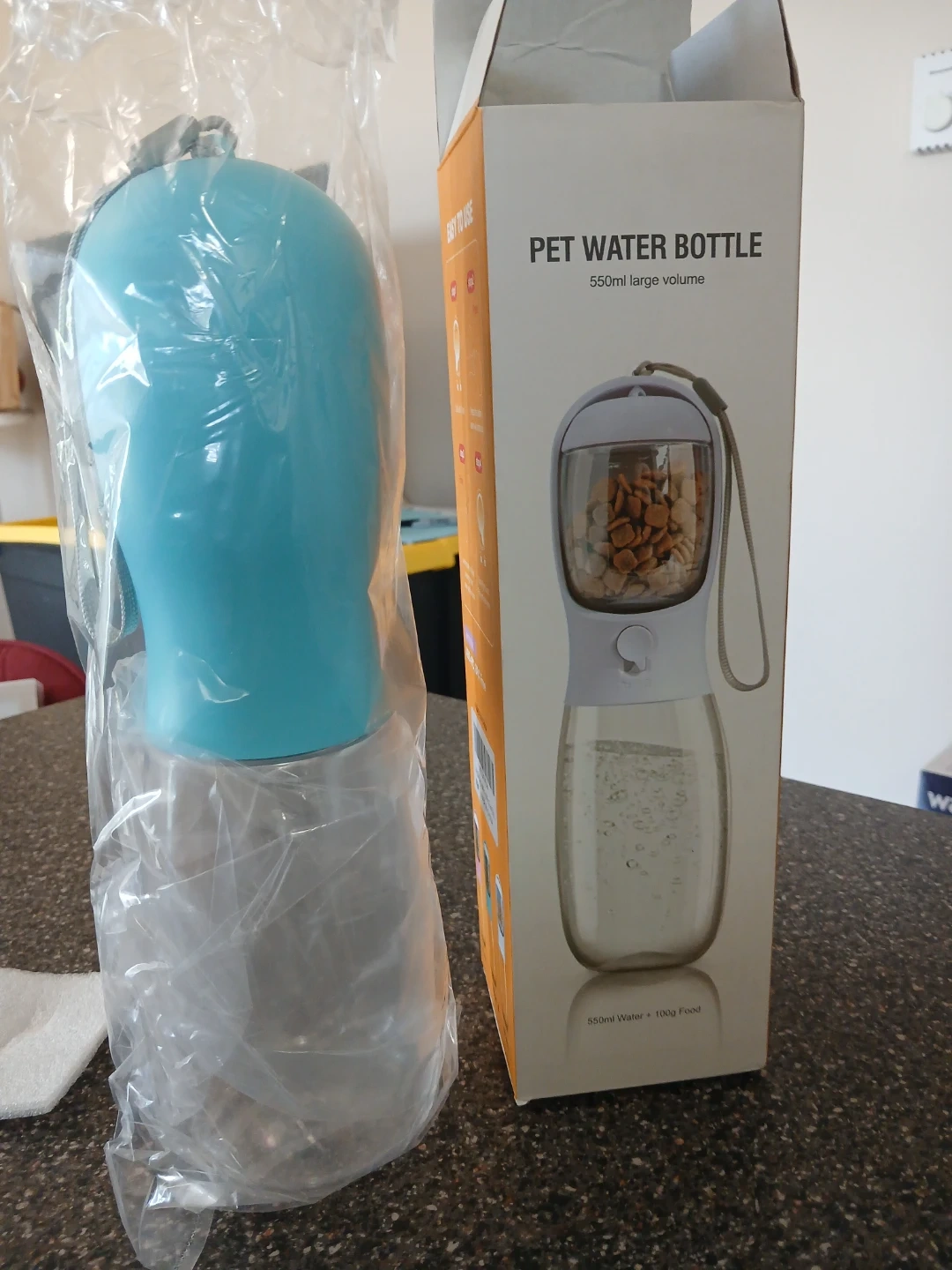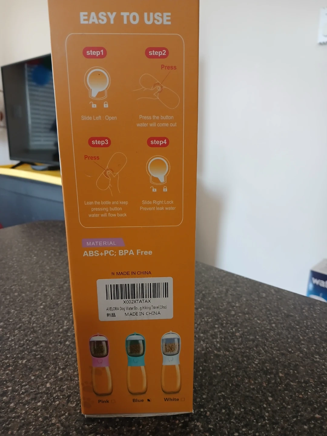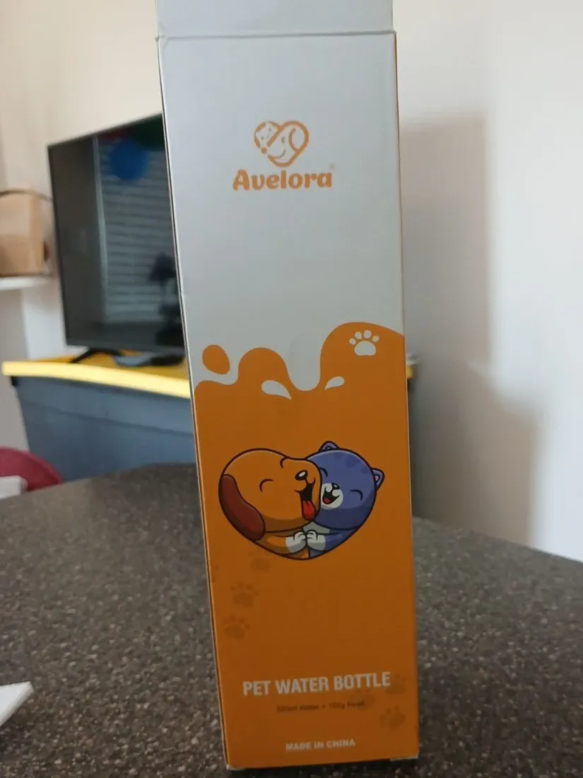 This Avelora pet water bottle holds 550ml of water and 100g of food. It's made from ABS+PC and is BPA-free. It's easy to use with a slide-open and slide-lock function to prevent leaks. This bottle is great for taking your furry friend on the go!