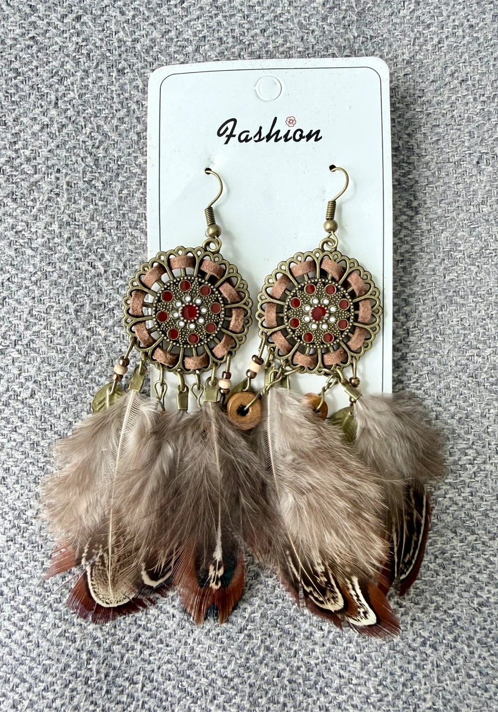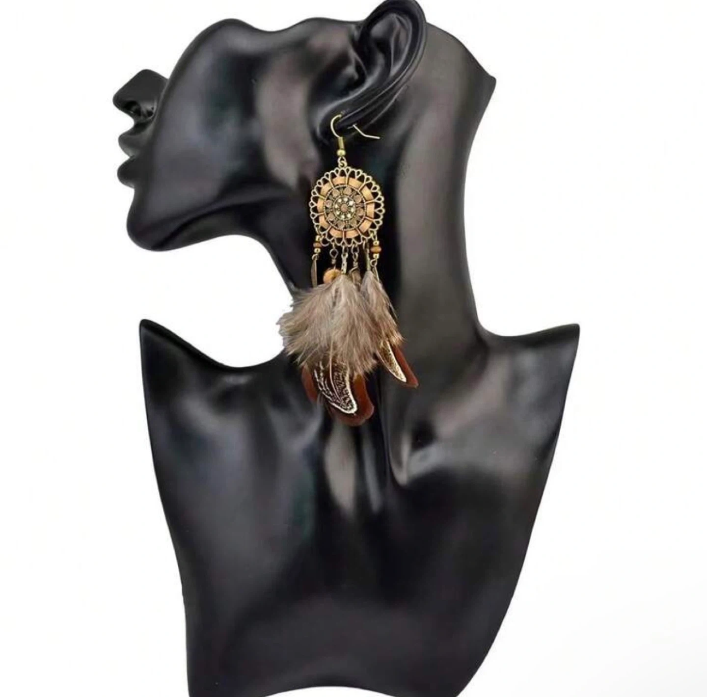 Add a unique boho touch to your look with these beautiful statement feather earrings. Featuring a detailed vintage-style metal design with natural feathers, they create a bold and eye-catching style perfect for any occasion.
