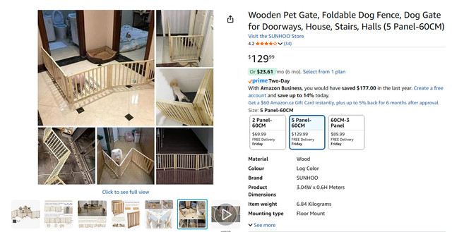 SUNHOO 5Panel Folding Fence – Natural Wood, 2x2ft, new in box