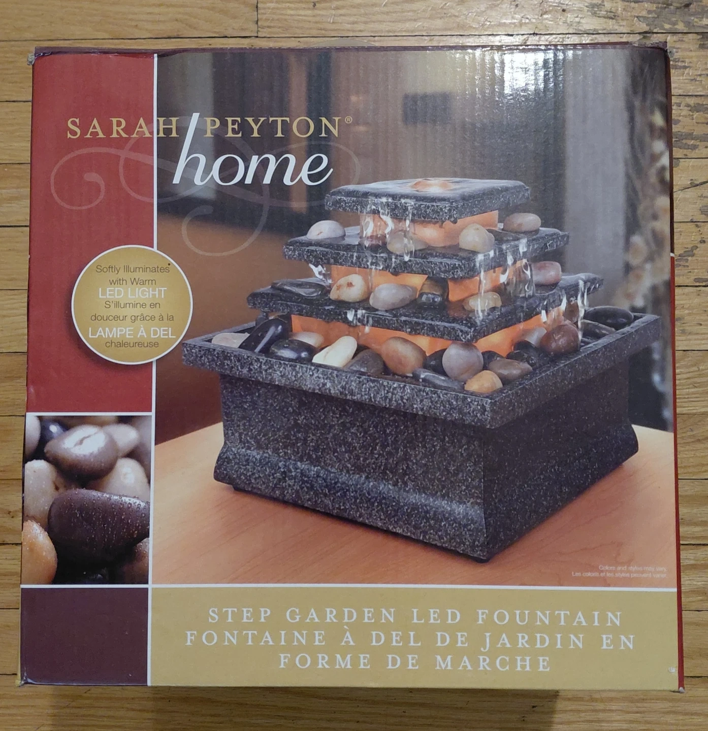 Sarah Peyton Home Step Garden LED Fountain. It softly illuminates with a warm LED light, creating a relaxing atmosphere. The fountain is designed with a step garden style, adding a unique touch to any space. 🥕