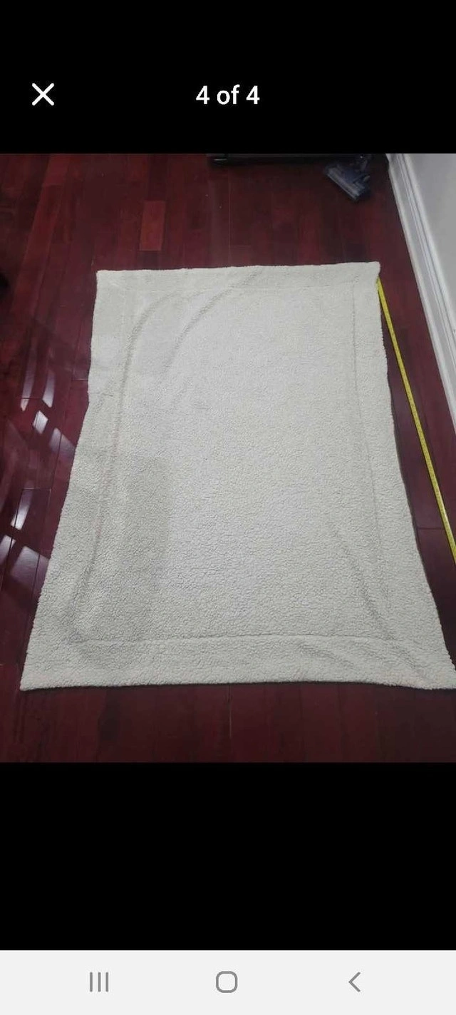 This is a used brown faux fur pet blanket with a white sherpa fleece backing, providing warmth and comfort for your furry friend. The blanket measures approximately 100cm by 150cm. It has been previously enjoyed, so it's not brand new, but it's still in good condition and ready to keep your pet cozy. If the ad is still up, the item is available—no need to ask! I believe your furry friend will love this blanket. Cash accepted.