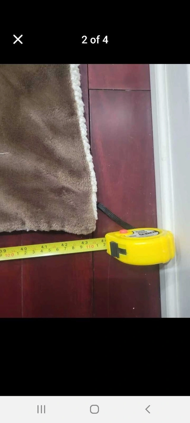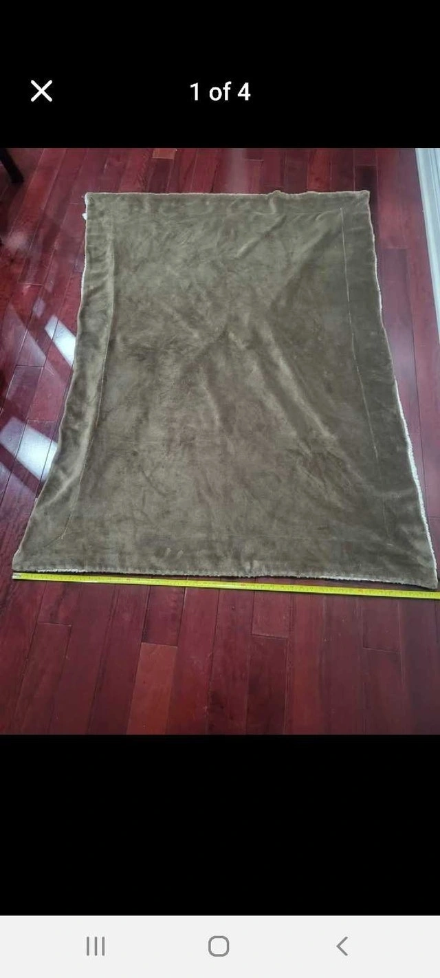 This is a used brown faux fur pet blanket with a white sherpa fleece backing, providing warmth and comfort for your furry friend. The blanket measures approximately 100cm by 150cm. It has been previously enjoyed, so it's not brand new, but it's still in good condition and ready to keep your pet cozy. If the ad is still up, the item is available—no need to ask! I believe your furry friend will love this blanket. Cash accepted.