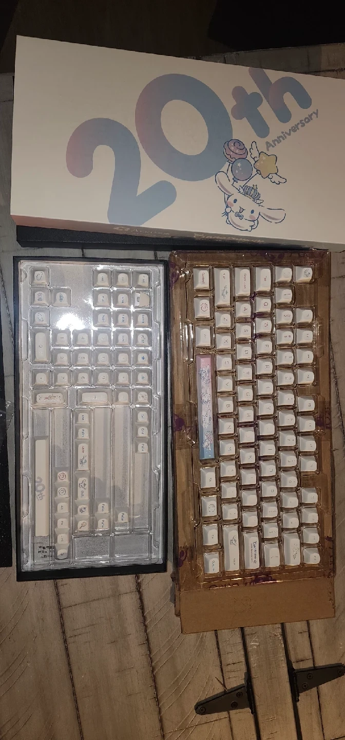15These Cinnamoroll 20th Anniversary Key Caps are brand new and ready to add a touch of kawaii to your keyboard! These adorable keycaps celebrate Cinnamoroll's milestone anniversary with charming designs. They're perfect for adding a personal touch to your mechanical keyboard and showing off your love for this iconic Sanrio character. * Officially licensed Sanrio product * Commemorates Cinnamoroll's 20th Anniversary * Compatible with most mechanical keyboards * Durable and high-quality construction Looking for a way to spruce up your keyboard? These keycaps are the cutest way to do it. Don't miss out – if the ad is up, they're available!