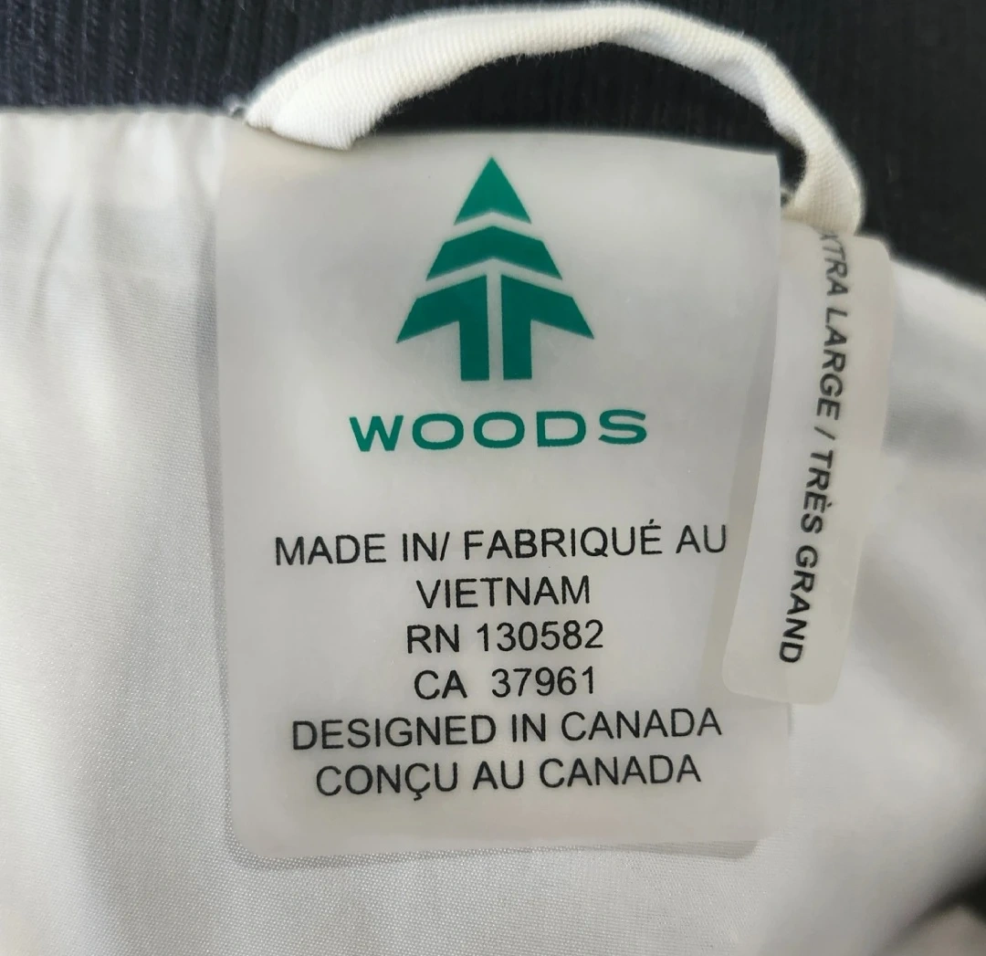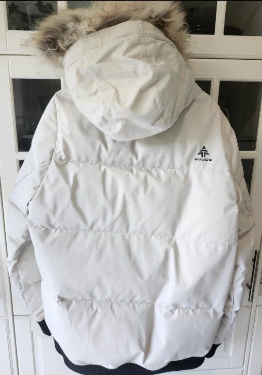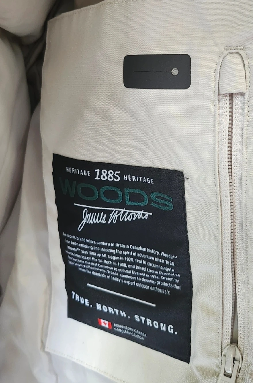Woods Winter Coat for sale in a unisex Xl, It's designed in Canada. 'True, North, Strong' is written on the zipper lining, a bit faded due to dry cleaning. No other visible marks or rips. *Freshly dry cleaned* and ready for a Canadian winter. Its a down filled and waterproof winter coat, I bought it originally at sports check.