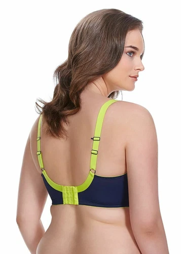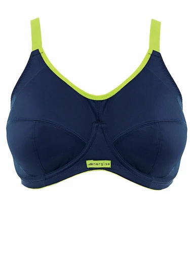 Reach your goals with confidence in the Energise Sports Bra in a classic navy colourway with sporty lime trims. Showcasing a unique non-compression design to encapsulate the bust for ultimate support and comfort. Complete with a clever J-hook fastening to offer added support in a racer back style.