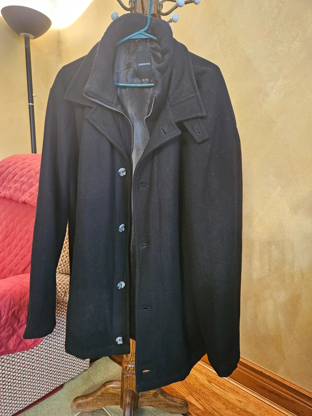 London Fog overcoat in size 3X/TG! This classic wool blend coat is perfect for staying warm during the colder months. It features a button-up front and a stylish design that will complement any outfit.
