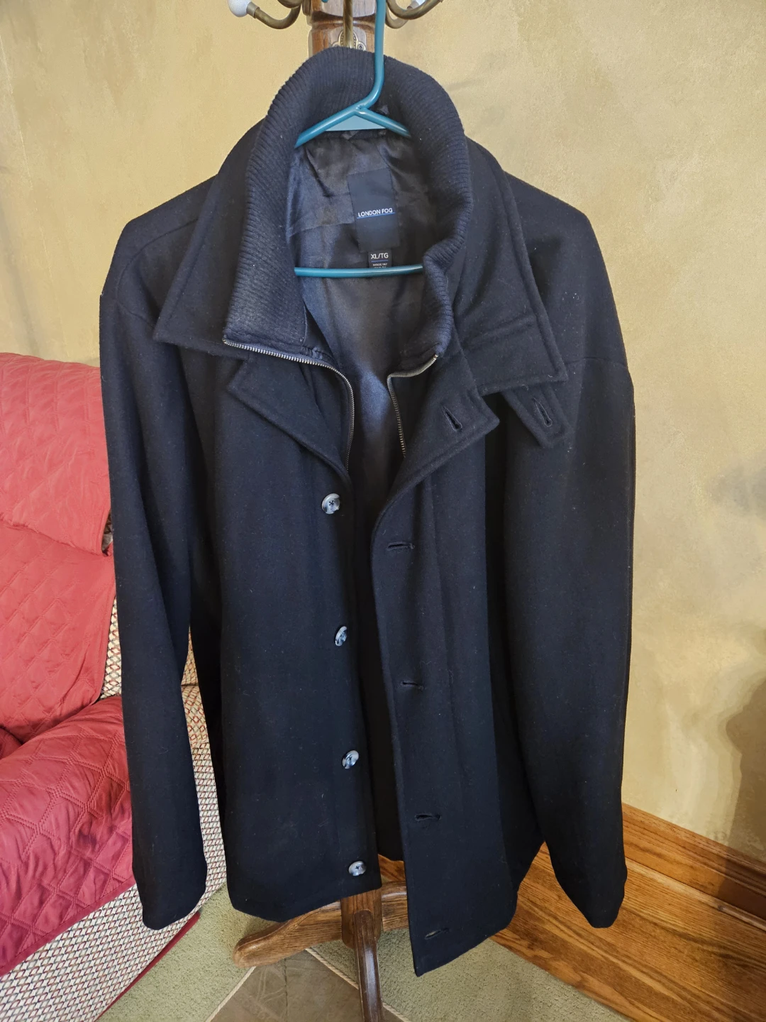 London Fog overcoat in size 3X/TG! This classic wool blend coat is perfect for staying warm during the colder months. It features a button-up front and a stylish design that will complement any outfit.