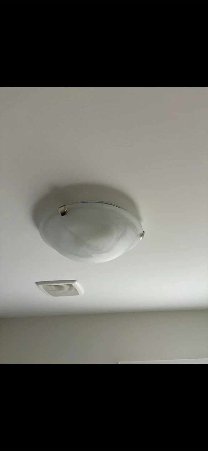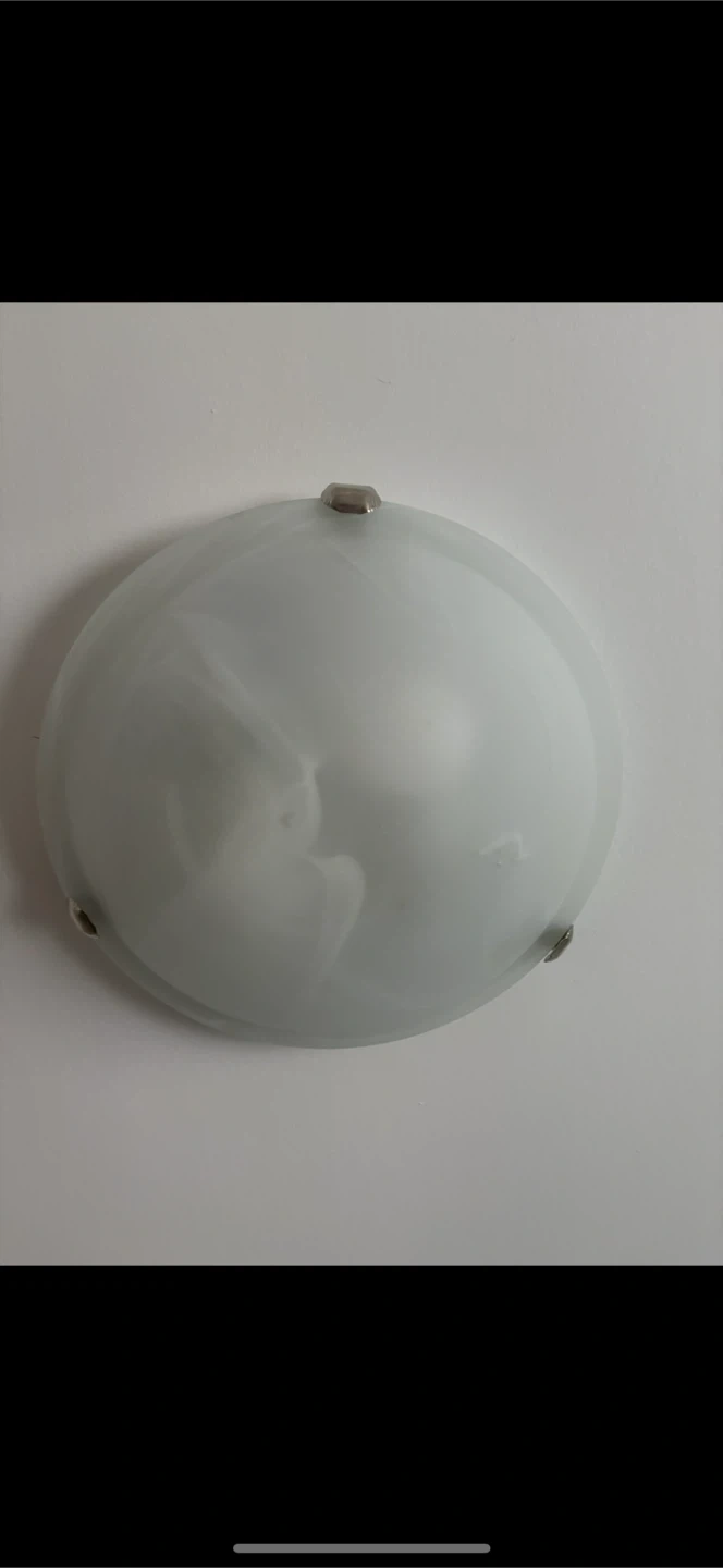 Selling a used ceiling light fixture. It's in great condition and ready to brighten up your space! The light is a round shape with a white glass dome and silver-tone hardware. Have 3 of them