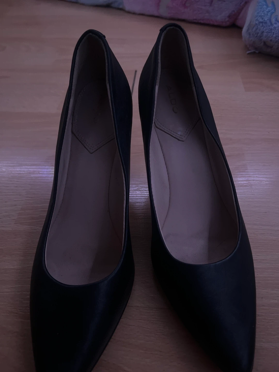 Selling a pair of ALDO black heels in size 7. They're in good condition, perfect for dressing up any outfit! Please see photos for signs of wear.