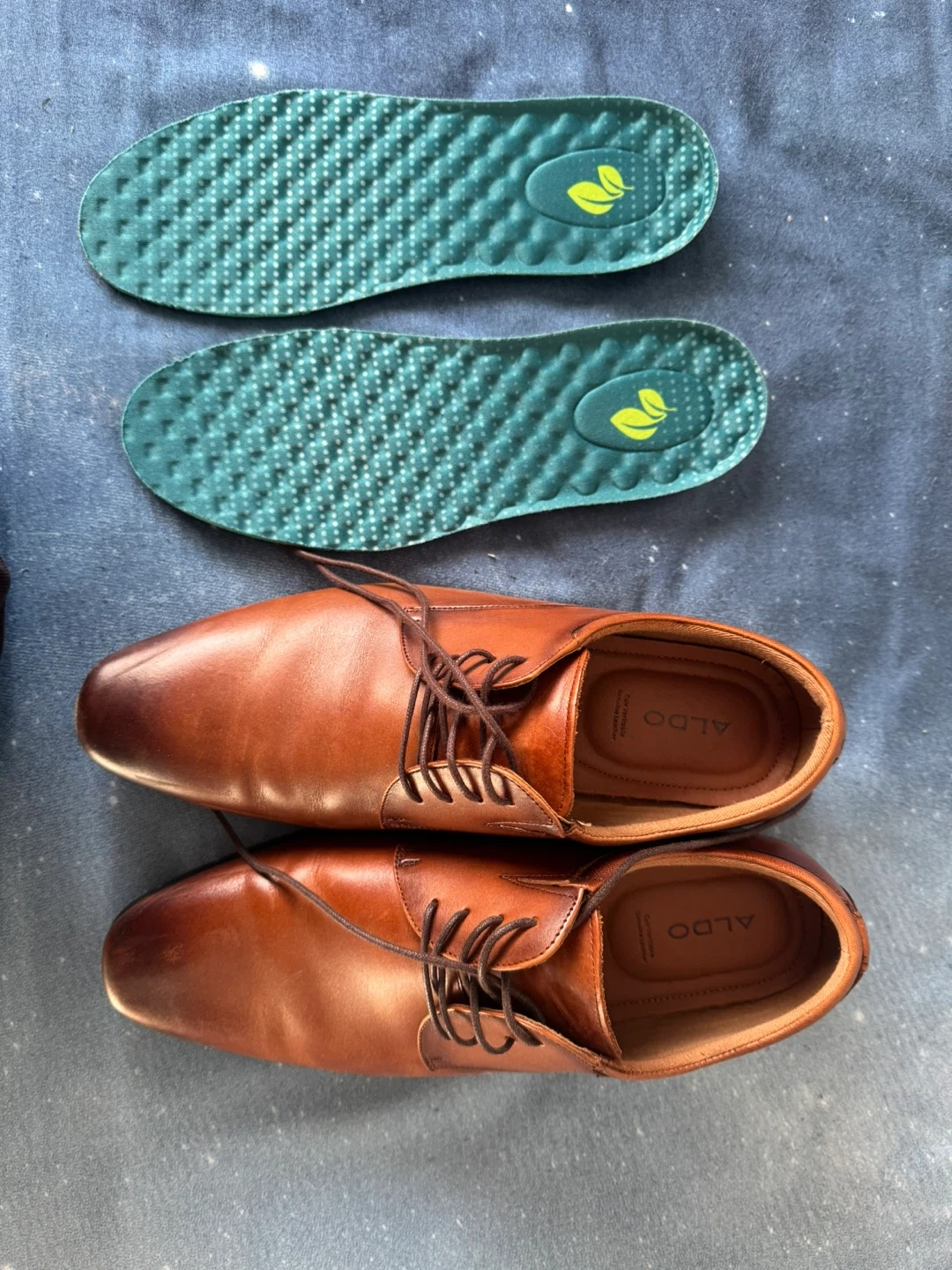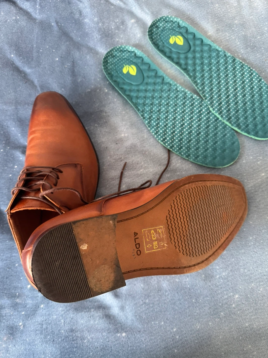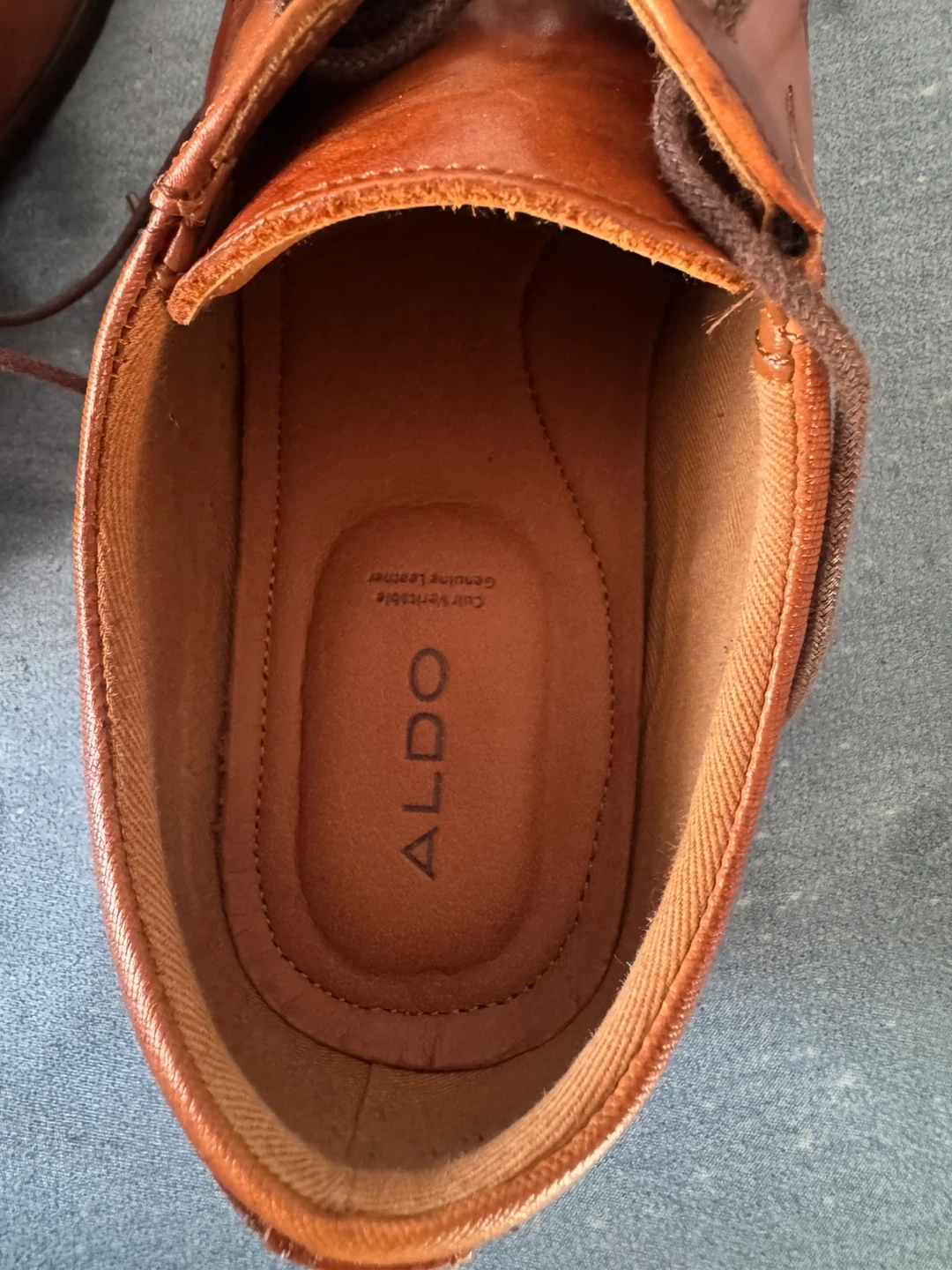 54Selling a pair of ALDO brown leather dress shoes. They come with the original box Used only once for job interview .