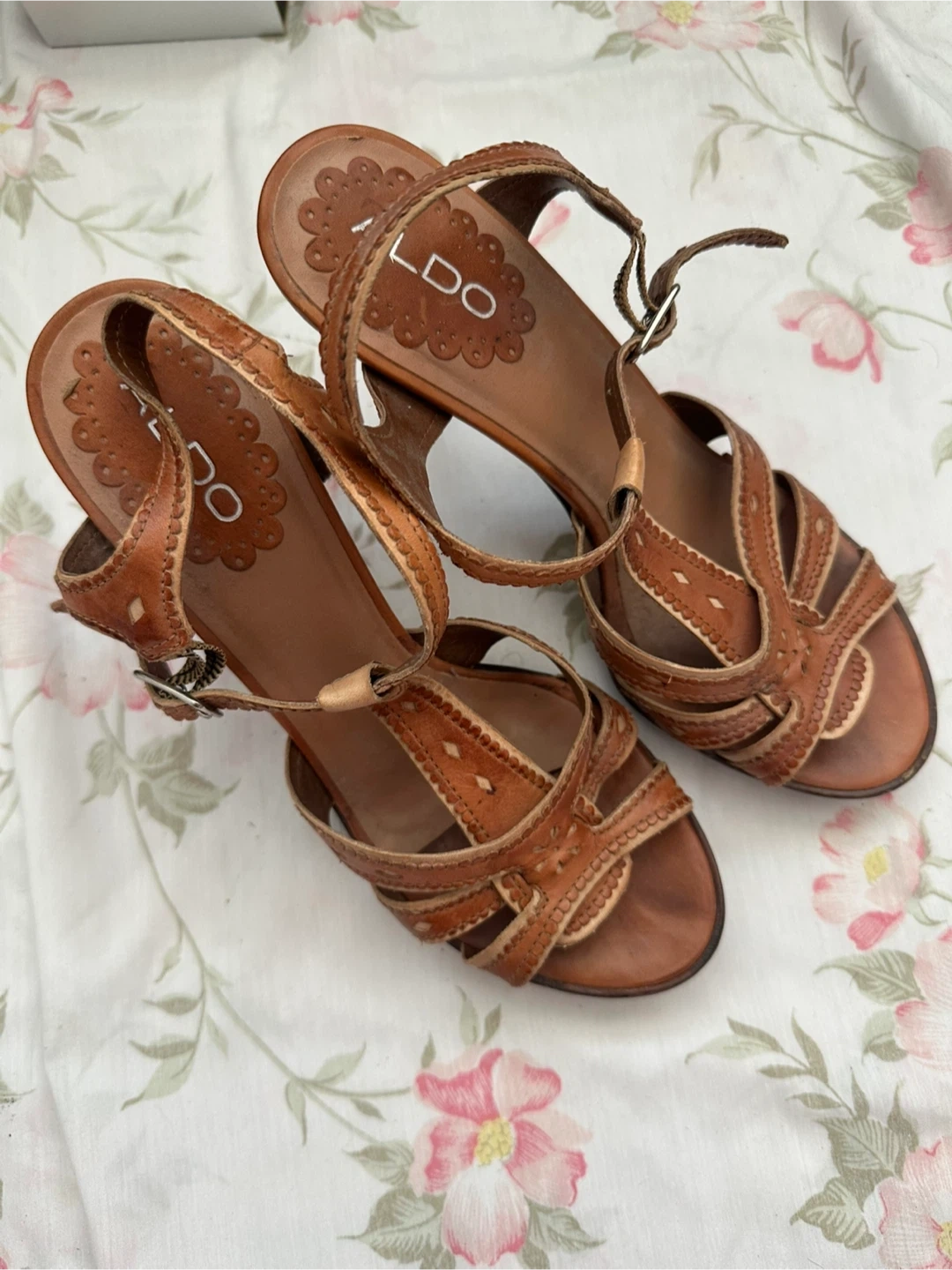 Brown Leather Heels with Straps from Aldo in Size 7. Good condition, over a decade old.
