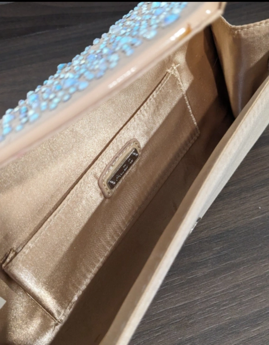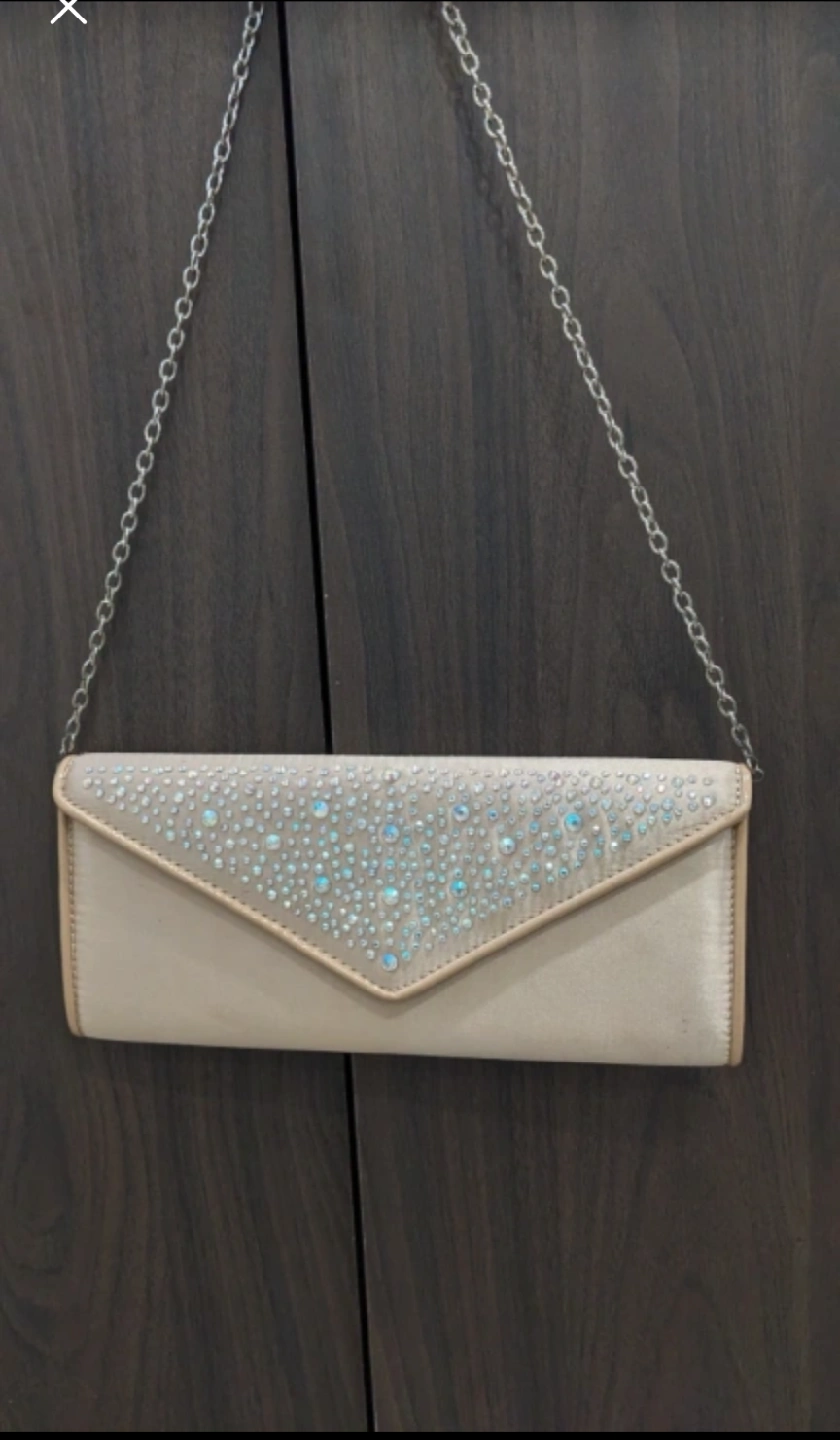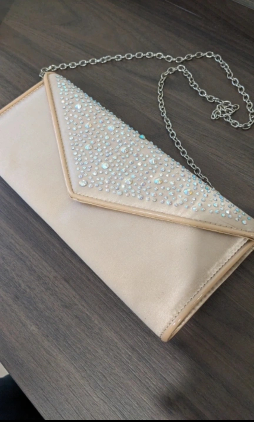 Elegant ALDO evening clutch with a delicate chain. The exterior is a soft beige colour, adorned with subtle rhinestones. Perfect for a night out or special occasion. 💡There are some small stains at the back ( please check the 4th pic). Meetup : union station