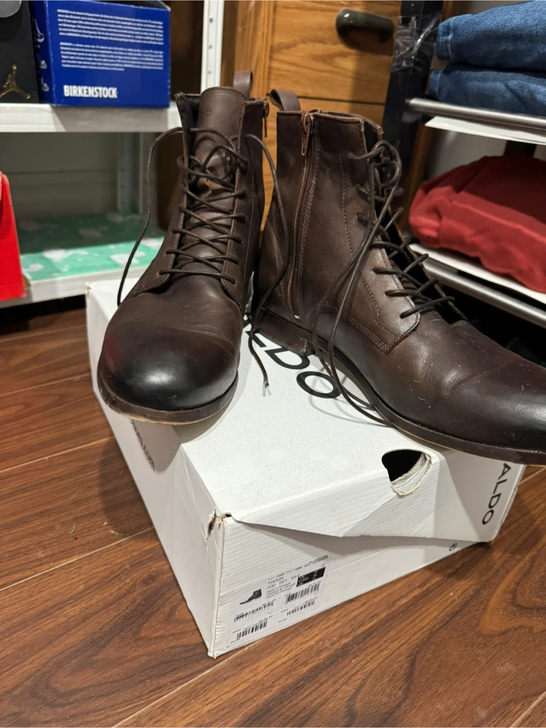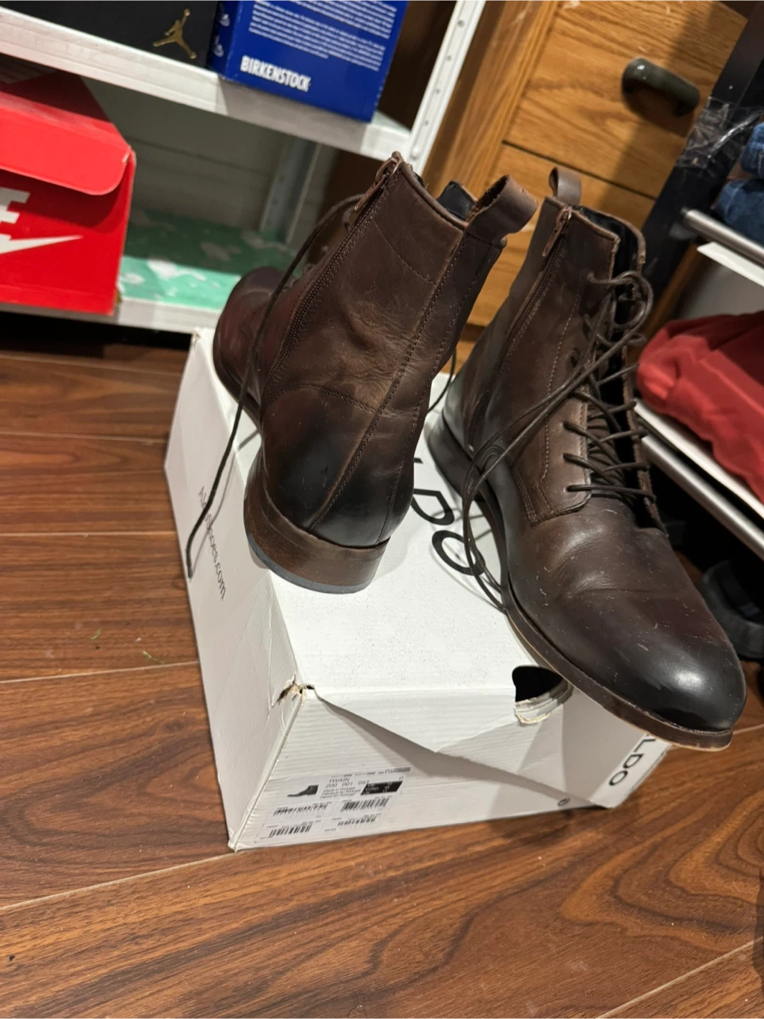 5Selling a pair of ALDO Twain men's boots in a lovely brown leather. They're a size 12 US. The box is included!