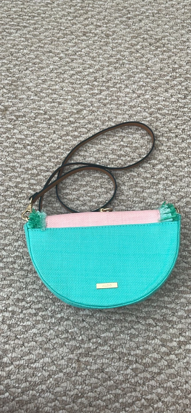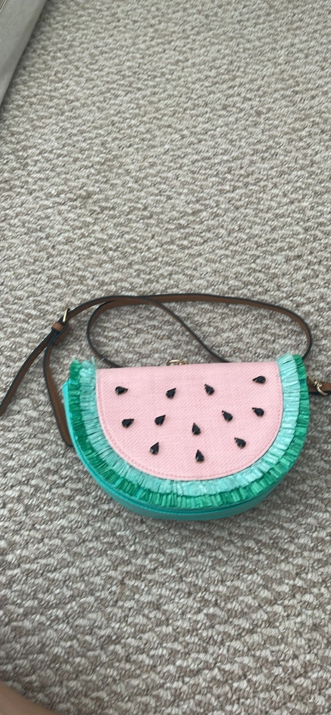 Super cute Kate Spade crossbody bag shaped like a watermelon! It's perfect for adding a fun pop of colour to any outfit. The bag features a unique design with pink and green accents, and a convenient crossbody strap. Great for summer or anyone who loves a playful accessory!