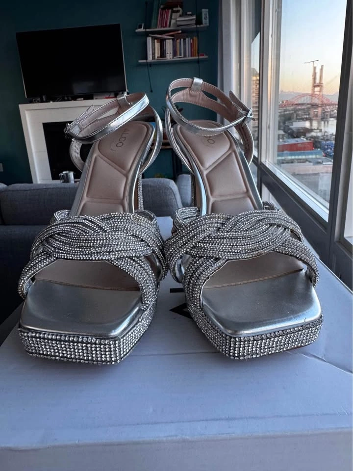 Size: Us 7.5 Eu 38 Selling my Aldo wedding shoes, only worn once on my wedding day! They are still in near-new condition and come with the original box and receipt. I bought it for $133 A beautiful, elegant pair—perfect for a bride-to-be or any special occasion! 📍 Condition: Worn once, like new Let me know if you're interested!