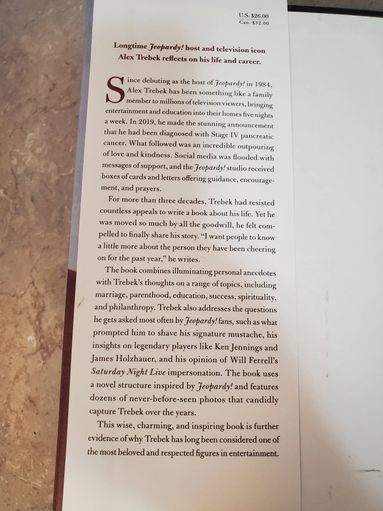 157Brand new, never read! Hardcover book by Alex Trebek. New York Times bestseller. Reflections on his life and career.