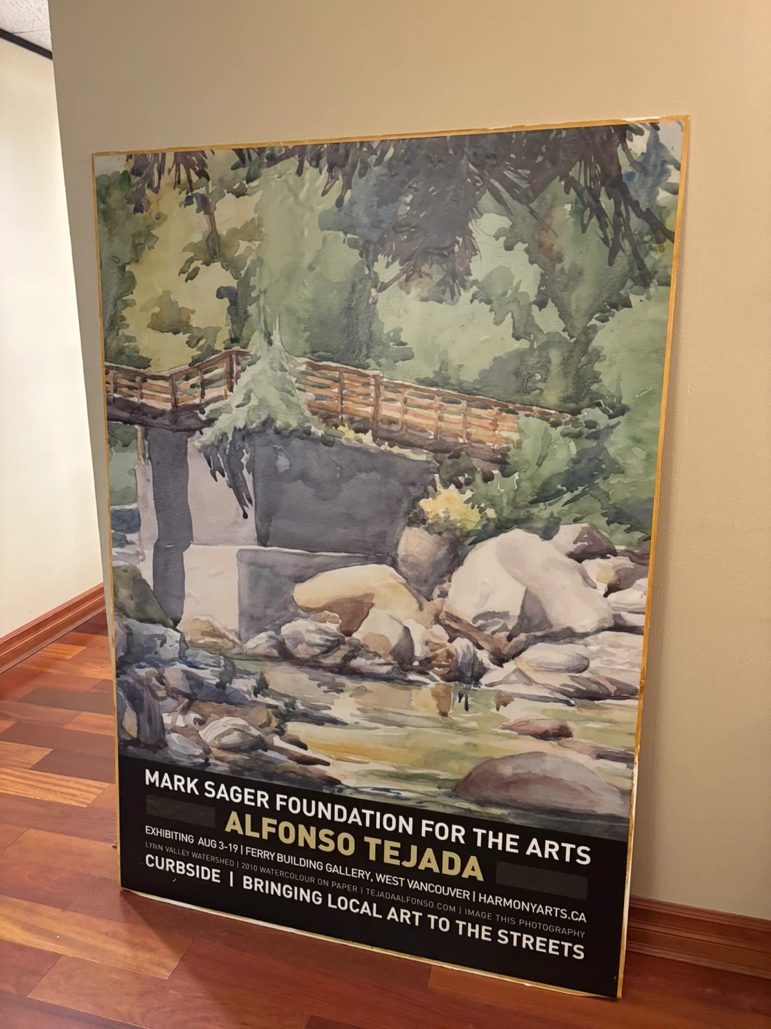 Selling an art print by Alfonso Tejada from the Mark Sager Foundation for the Arts. It was exhibited at the Ferry Building Gallery in West Vancouver. The artwork is a watercolour on paper from 2010, depicting the Lynn Valley Watershed. Perfect for adding a touch of local art to your space