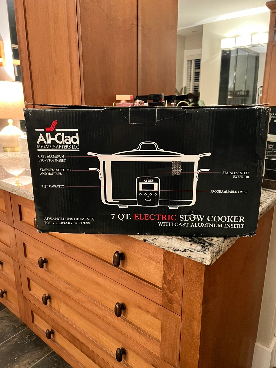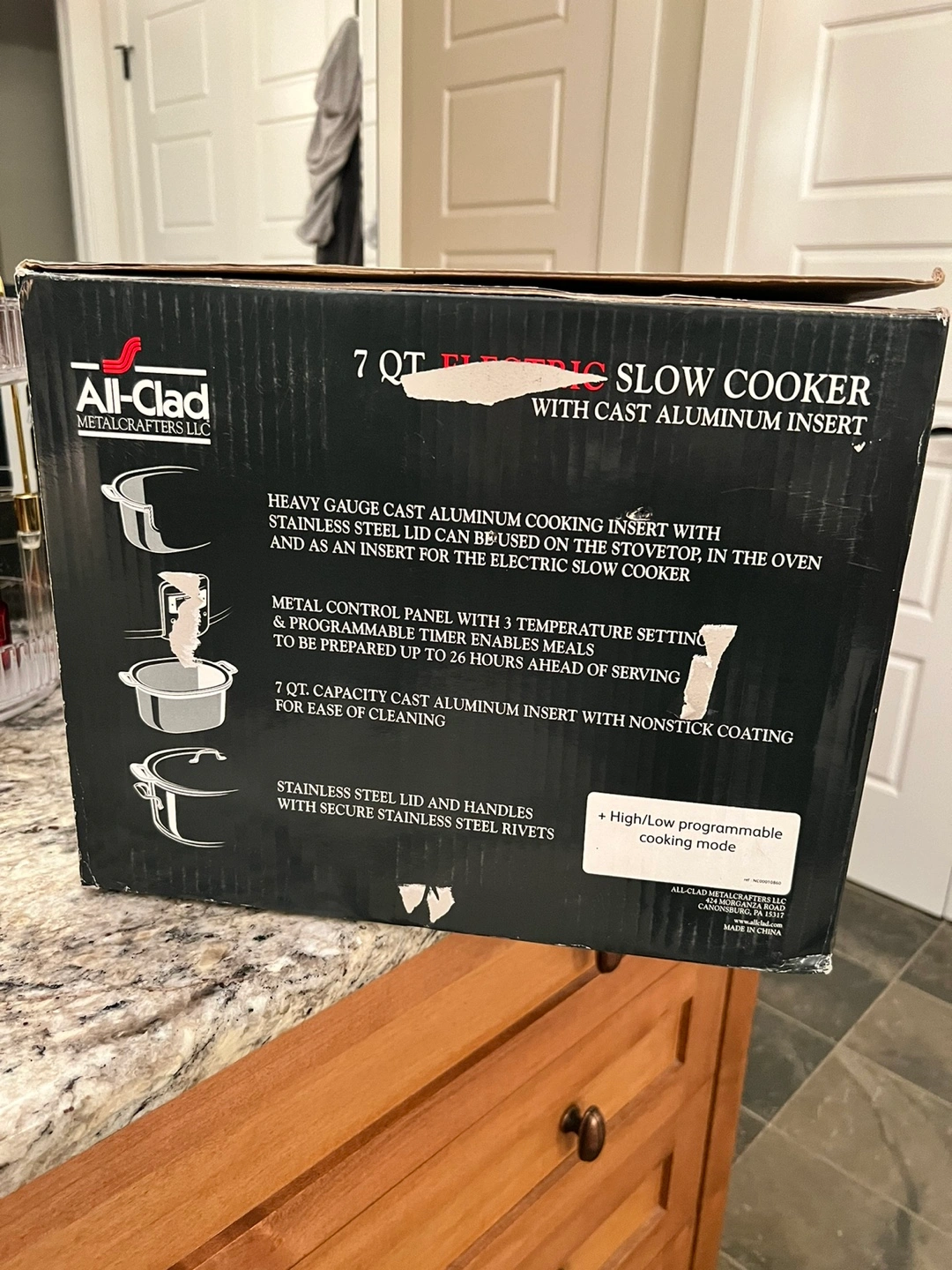 Heavy gauge cast aluminum cooking insert with stainless steel lid can be used on the stovetop, in the oven and as an insert for the electric slow cooker. Metal control panel with 3 temperature setting & programmable timer enables meals to be prepared up to 8 hours ahead of serving. 7 QT capacity cast aluminum insert with nonstick coating for ease of cleaning. Stainless steel lid and handles with secure stainless steel rivets.