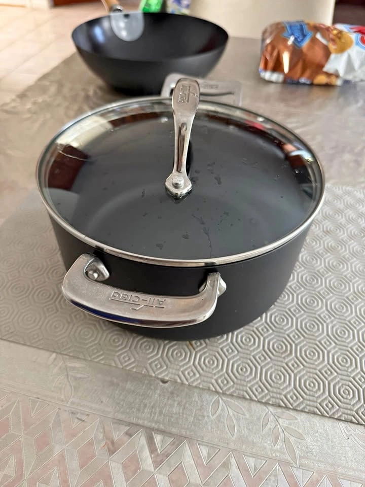 Only used 2 times. Got instant pot so no longer need it. All clad is a luxury brand and has nonstick safe coating and tested at industrial standards. Newer one is around $174 plus taxes