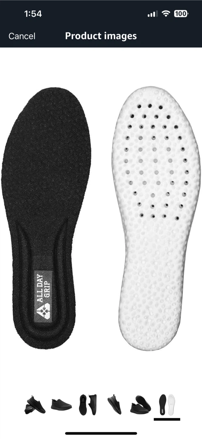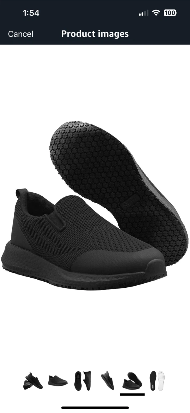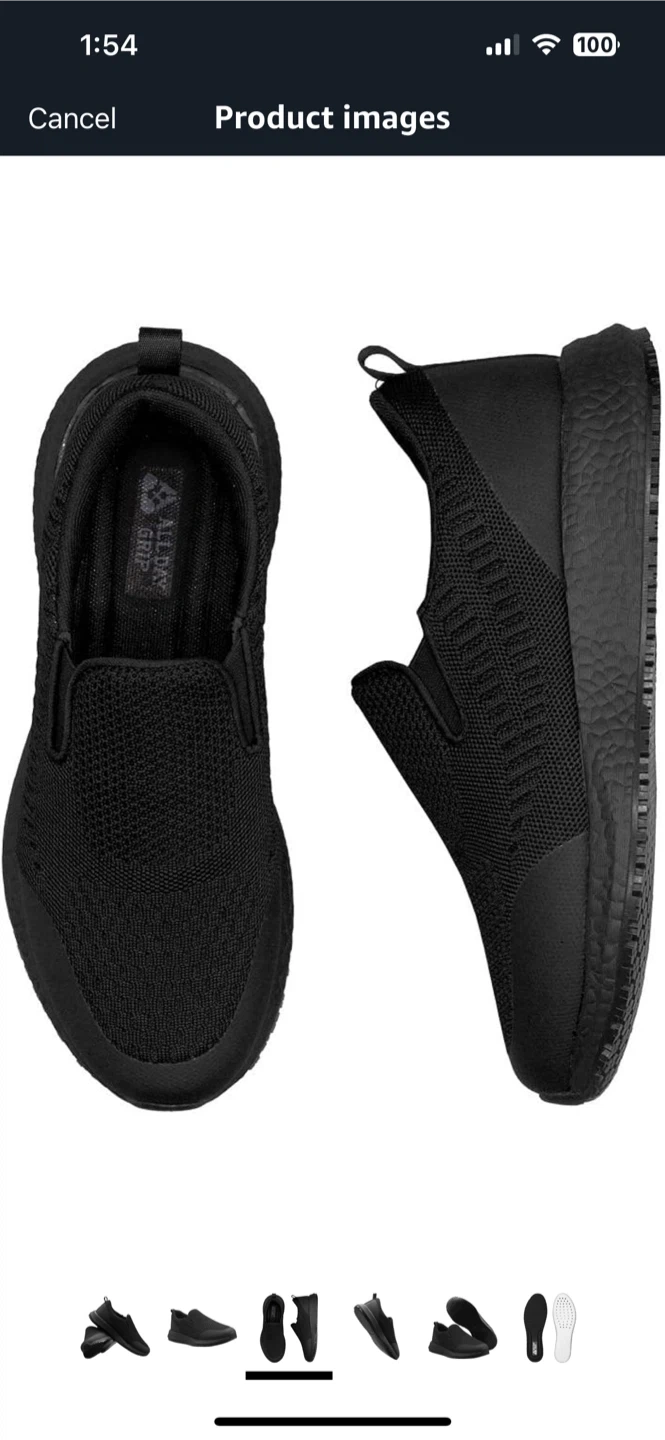 New in box Selling a pair of black slip-resistant shoes by All Day Grip. These are great for work or everyday wear. They are designed to provide excellent traction and comfort throughout the day! Woman 8 Man 6.5