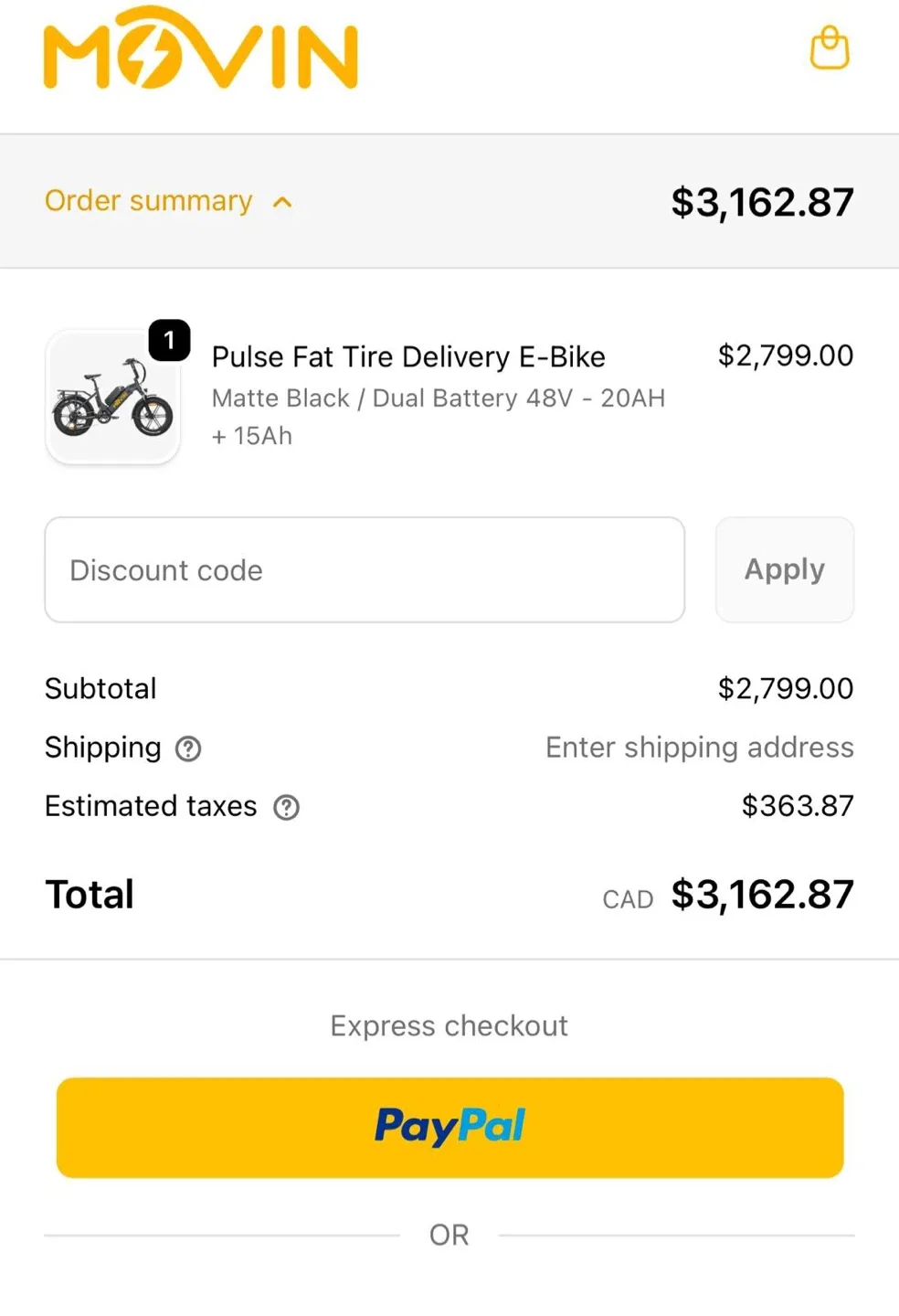 Movin Pulse Fat Tire Delivery E-Bike