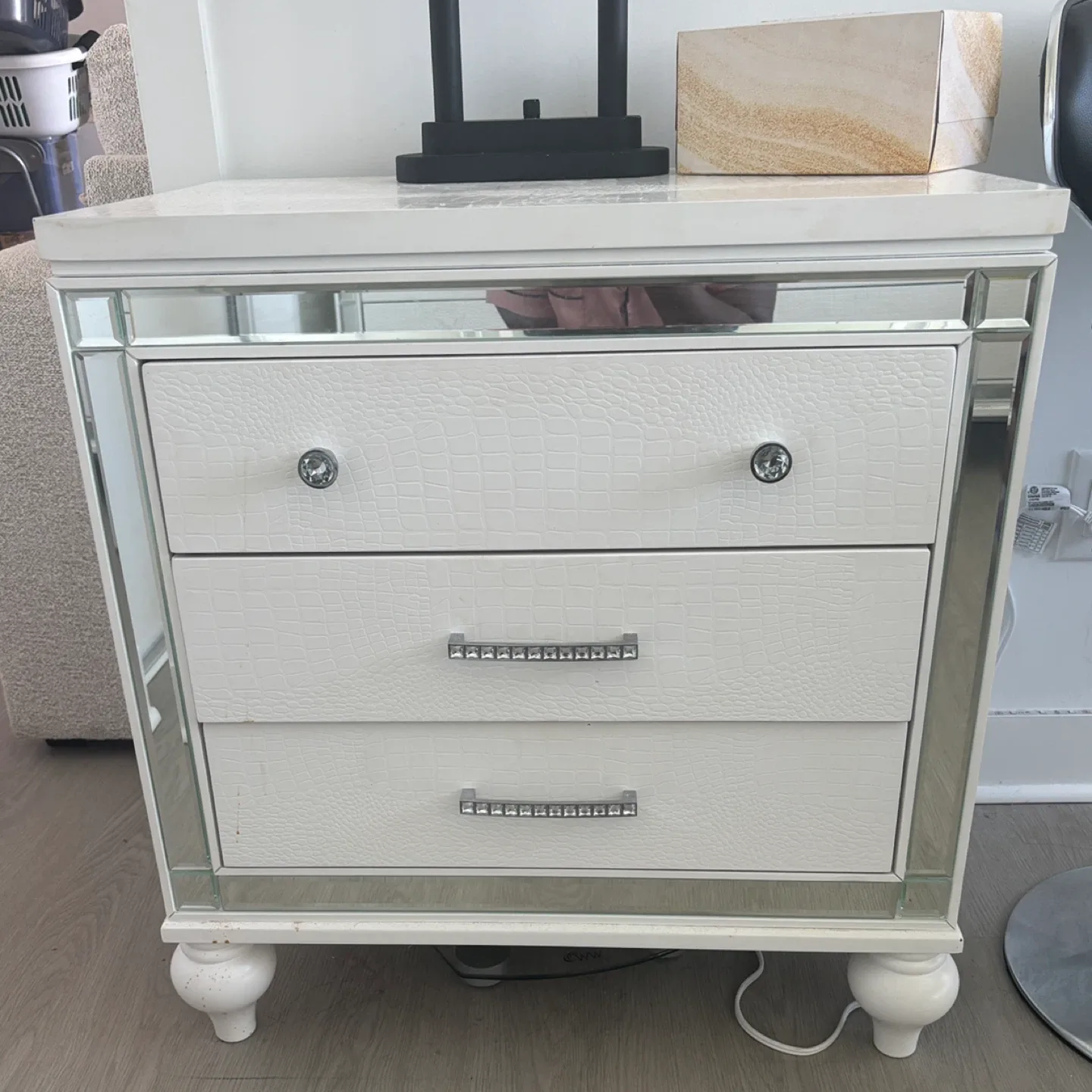 White Mirrored 3-Drawer Nightstand