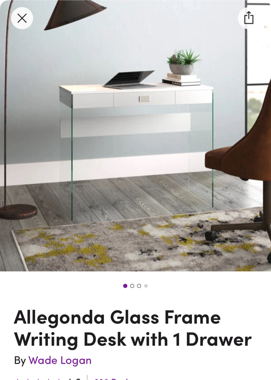 Selling an Allegonda glass frame writing desk with one drawer. It's in great condition and ready for a new home! This is used very sparingly so it is in excellent condition with no scratches on the glass either. Love this desk but I don’t have the space for 2 desks.